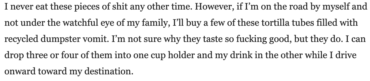 Chimichanga, Beaver Nuggets and Beef Jerky
