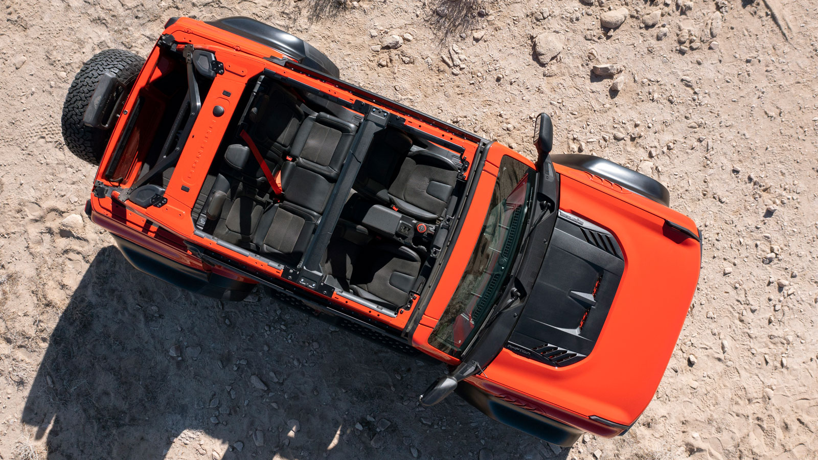 In the front row of the Bronco Raptor, passengers will have 40.8 inches of headroom and 43.1 inches legroom. This drops a bit in the second row to 40.1 inches headroom and 36.3 inches of legroom.
