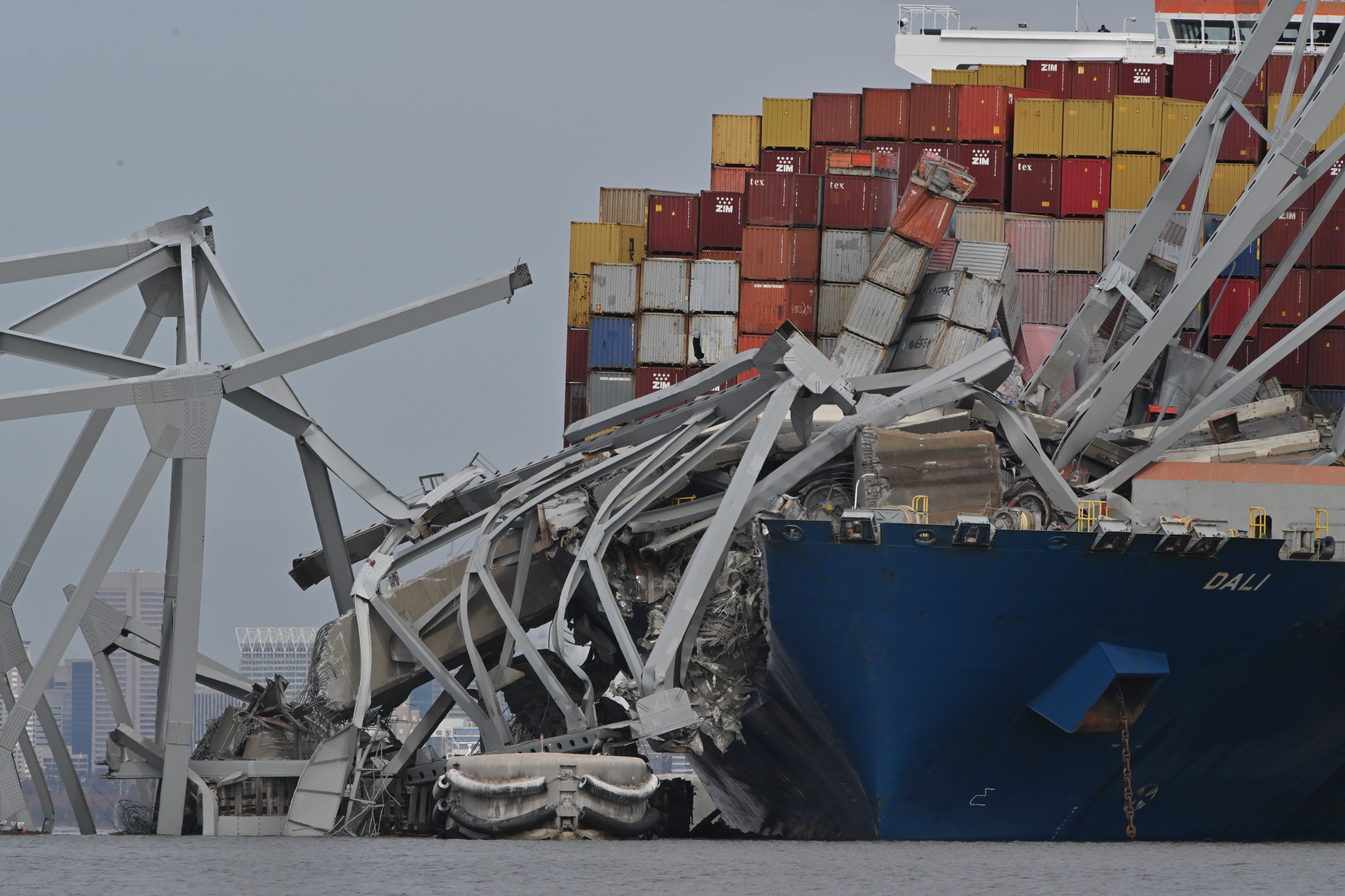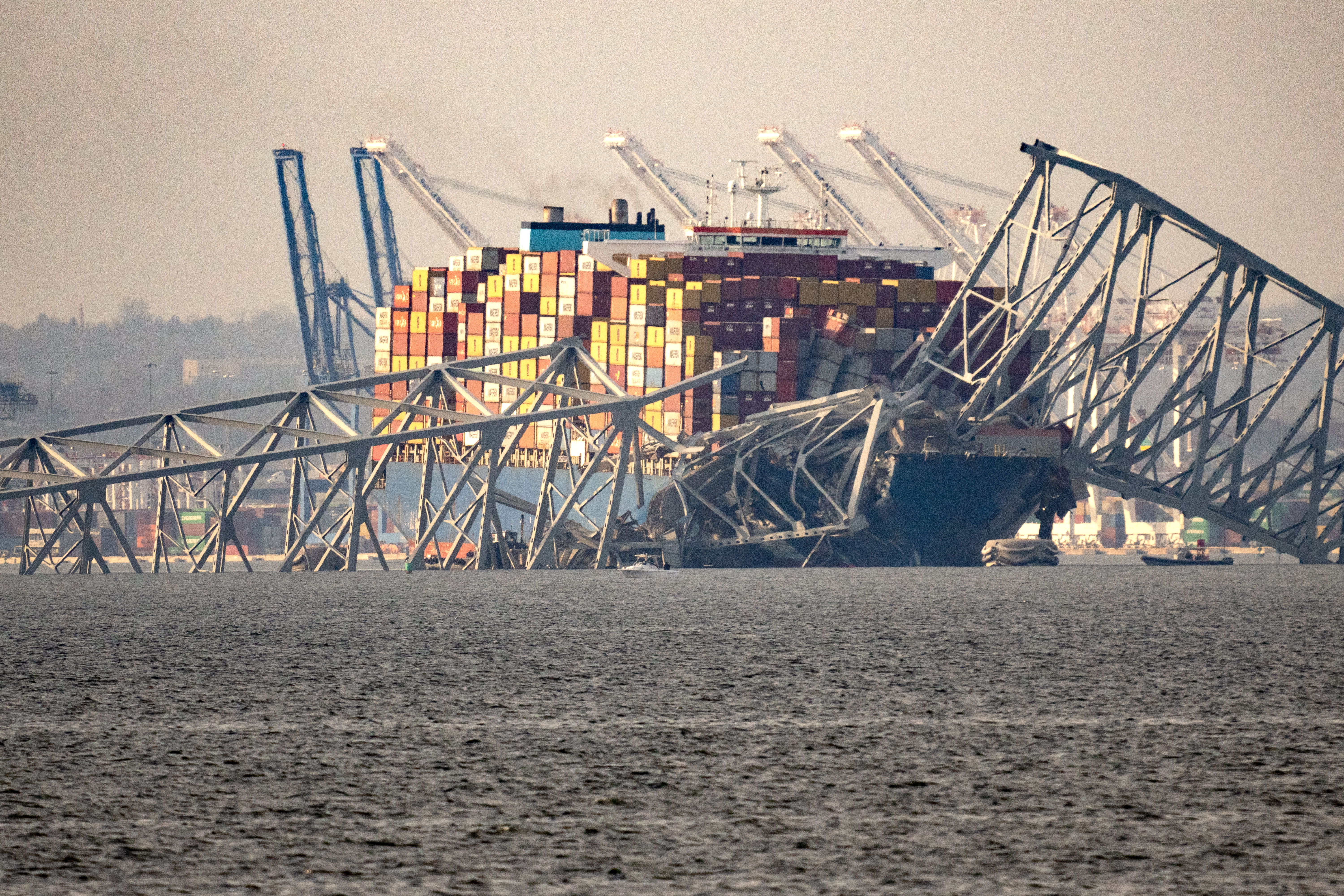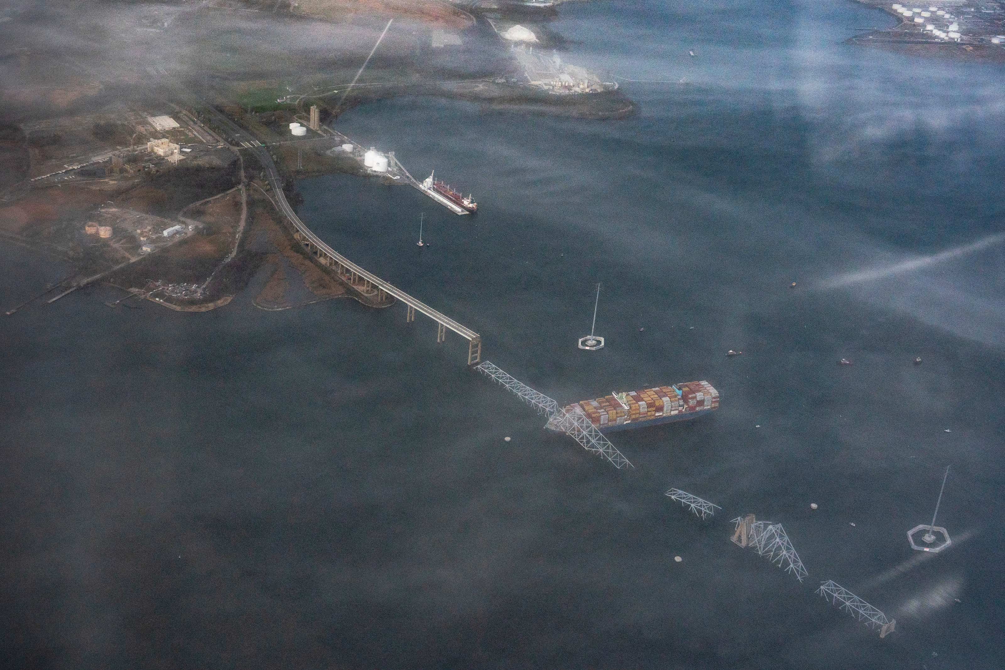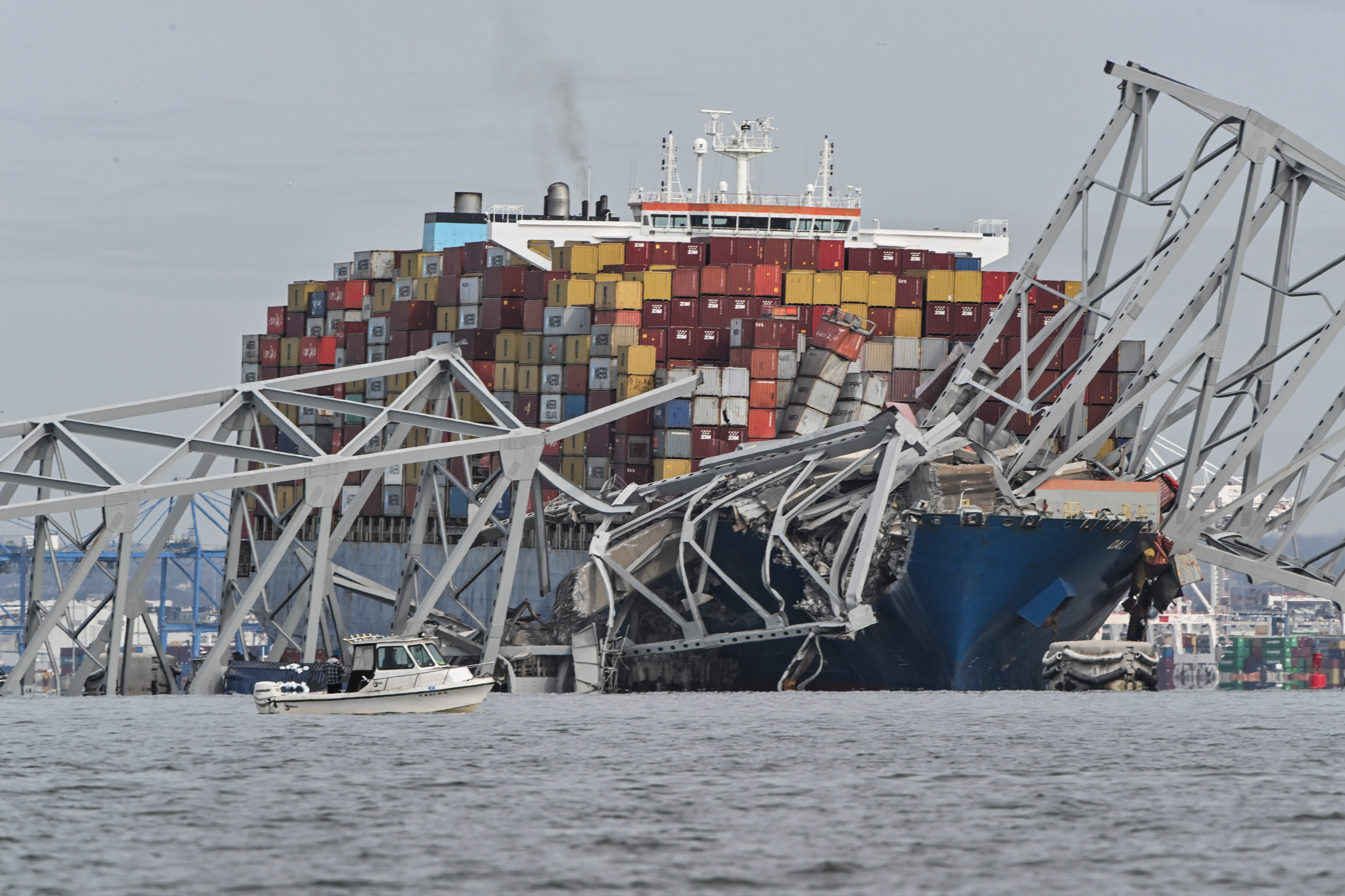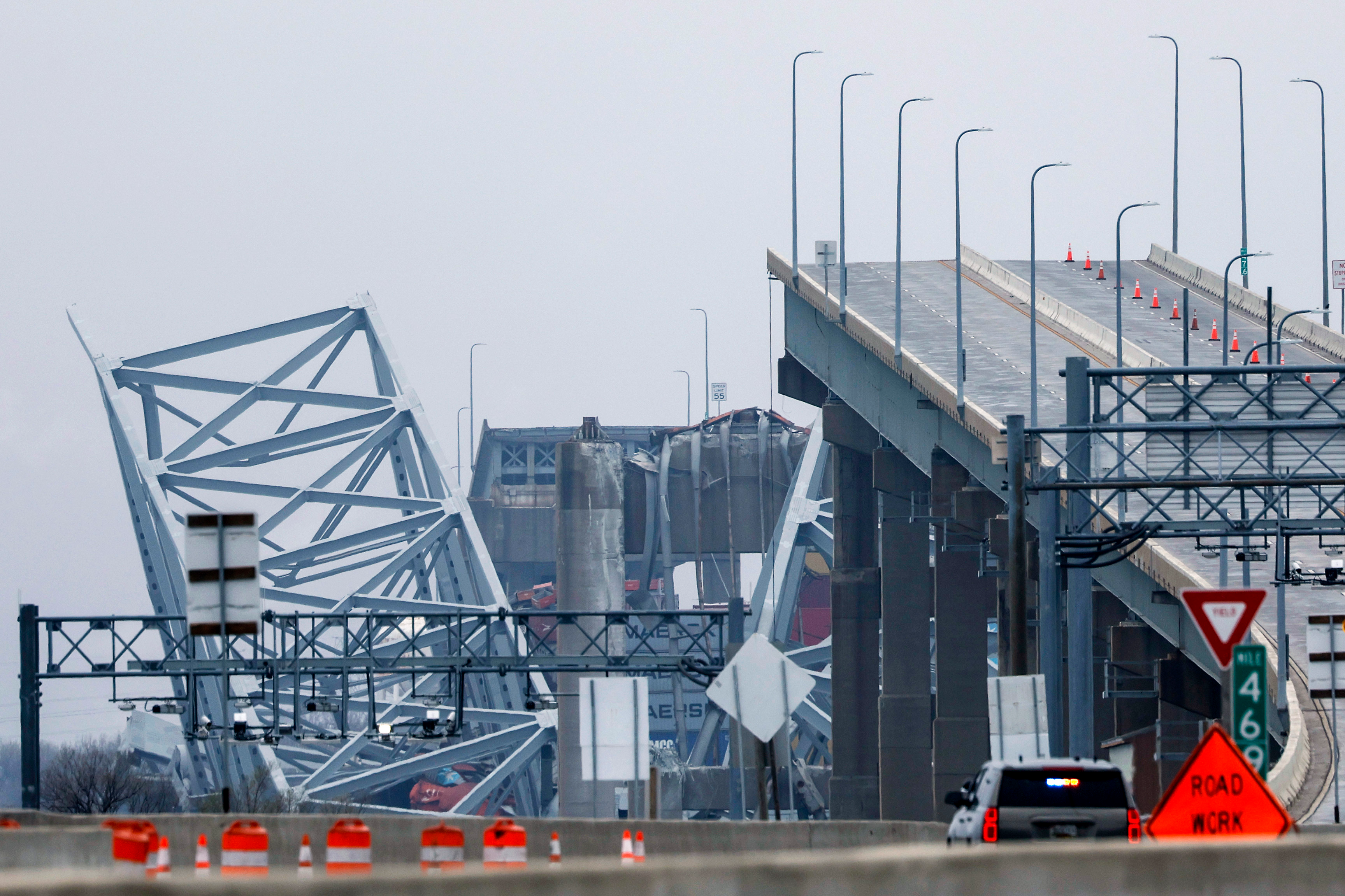 At eight knots, the ship was simply too large and going too fast to stop in time. There were just 90 seconds between mayday and collision for emergency crews to close the bridge to traffic. First responders were unable to move a road crew patching potholes off the bridge in time.