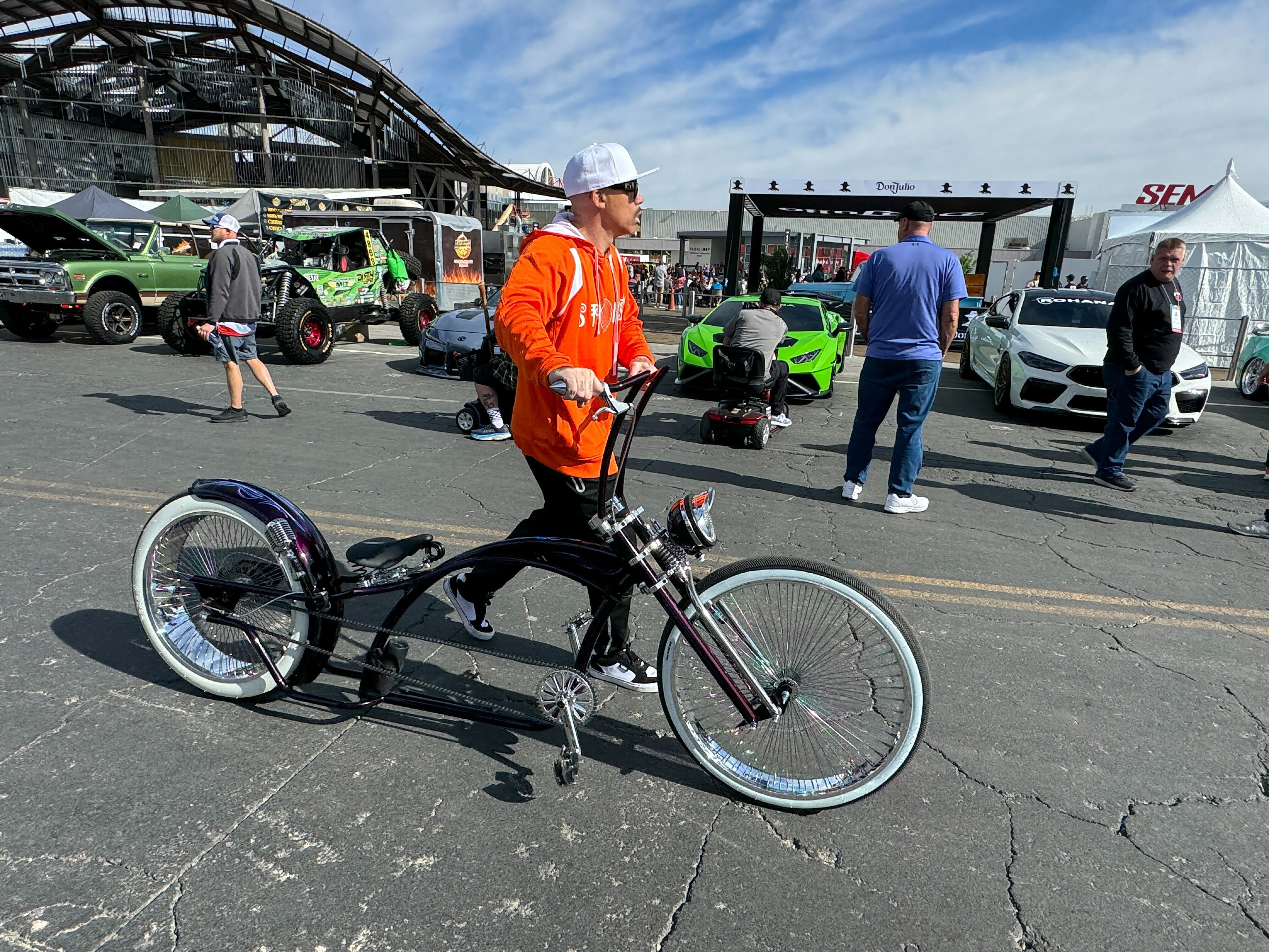 Totally impractical eye candy is what SEMA is supposed to be about. I love this. Don't get your pant leg caught in that chain, man!