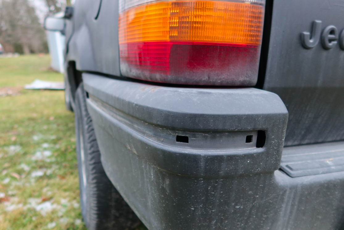 While we're talking about the top of the Jeep, the rear washer came loose from the hatch. Also, the trim around the bumpers has also come loose: