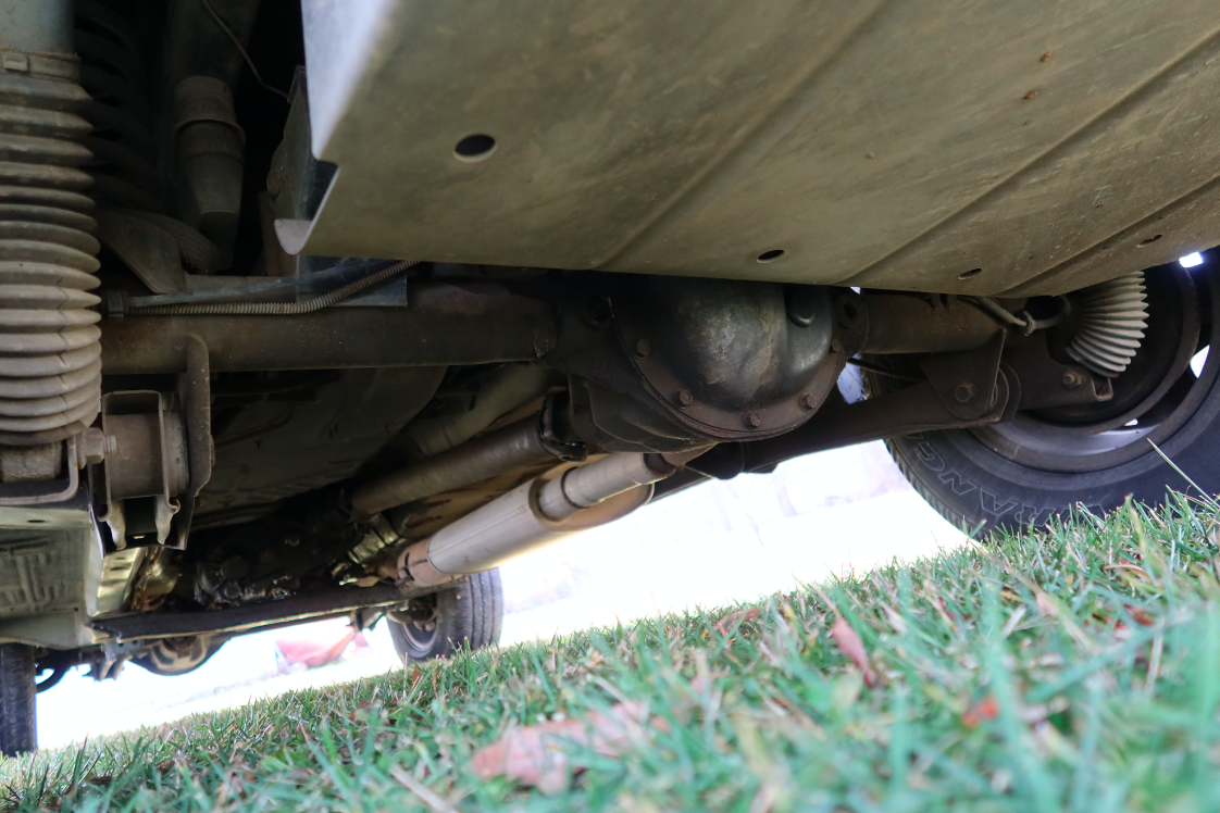 That package includes special springs and shocks, tow hooks, and also an underbody skid plate group. I've got my fuel tank and steering skid plates, but the armor under my transfer case is nowhere to be found! There are threaded provisions in the unibody and transfer case crossmember for it, so it was definitely there at one point, but it is now gone forever.