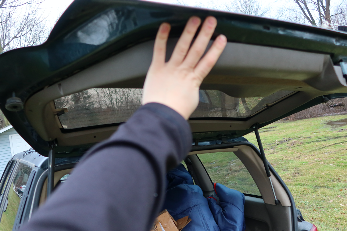 In classic Jeep Cherokee/Grand Cherokee fashion, the gas struts meant to hold the rear hatch up do not work. This is no big deal; I'll try to snag some from a junkyard, or, if I'm feeling like a baller, I'll buy some new ones from a parts store.