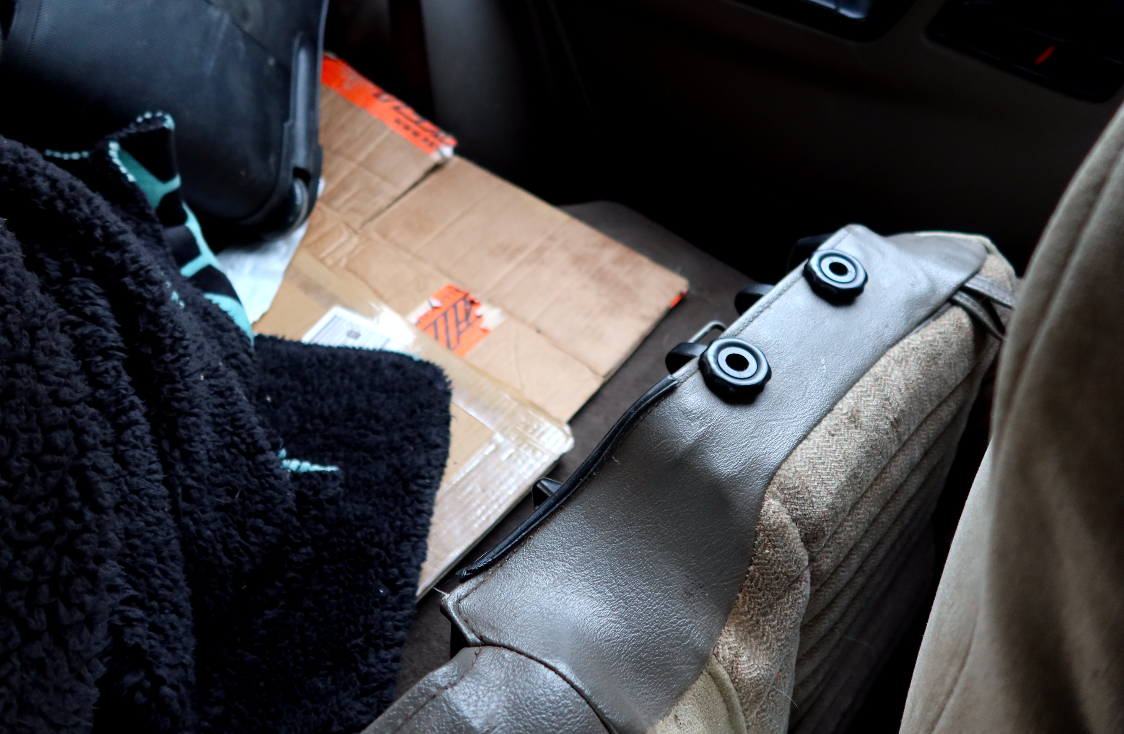 I'm also missing my rear bench headrests (the bench is folded for now, as I have a heavy axle in the back of the Jeep):