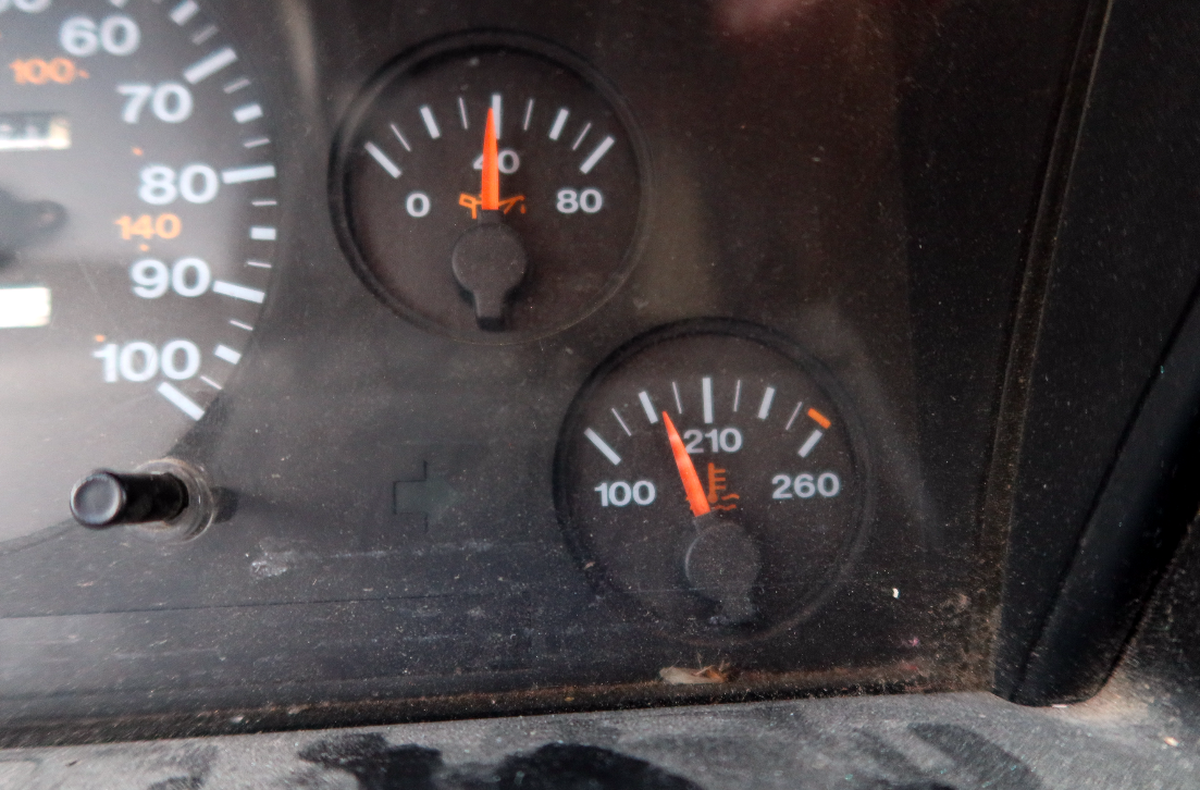 Speaking of the thermostat, I think it's the wrong one, because the engine runs cool, as shown below (note that the oil pressure looks good now that I fixed the sender and harness):