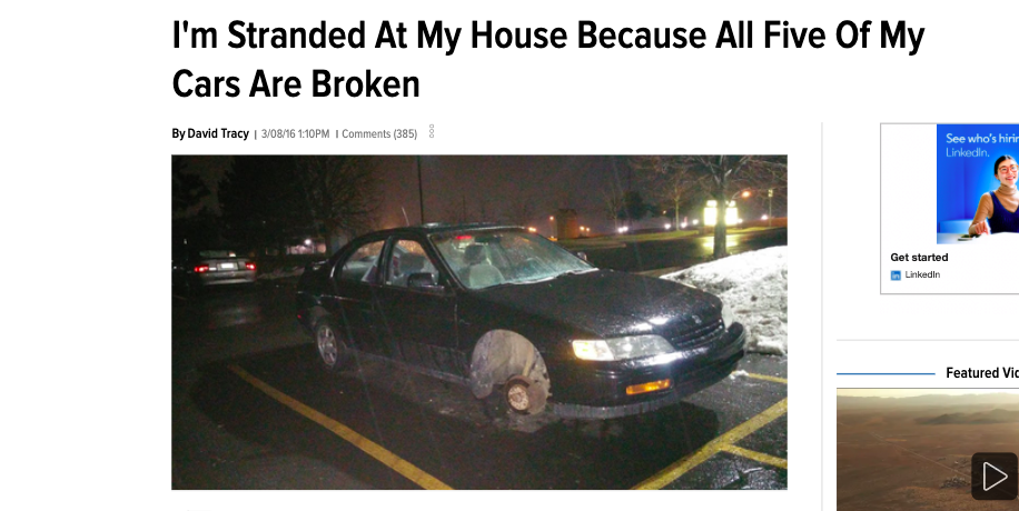 I am literally the first Google result that pops up when you search "all my cars are broken," and by now, it should be no surprise why. Ever since I started at Jalopnik in 2015, I've been struggling to tread water.