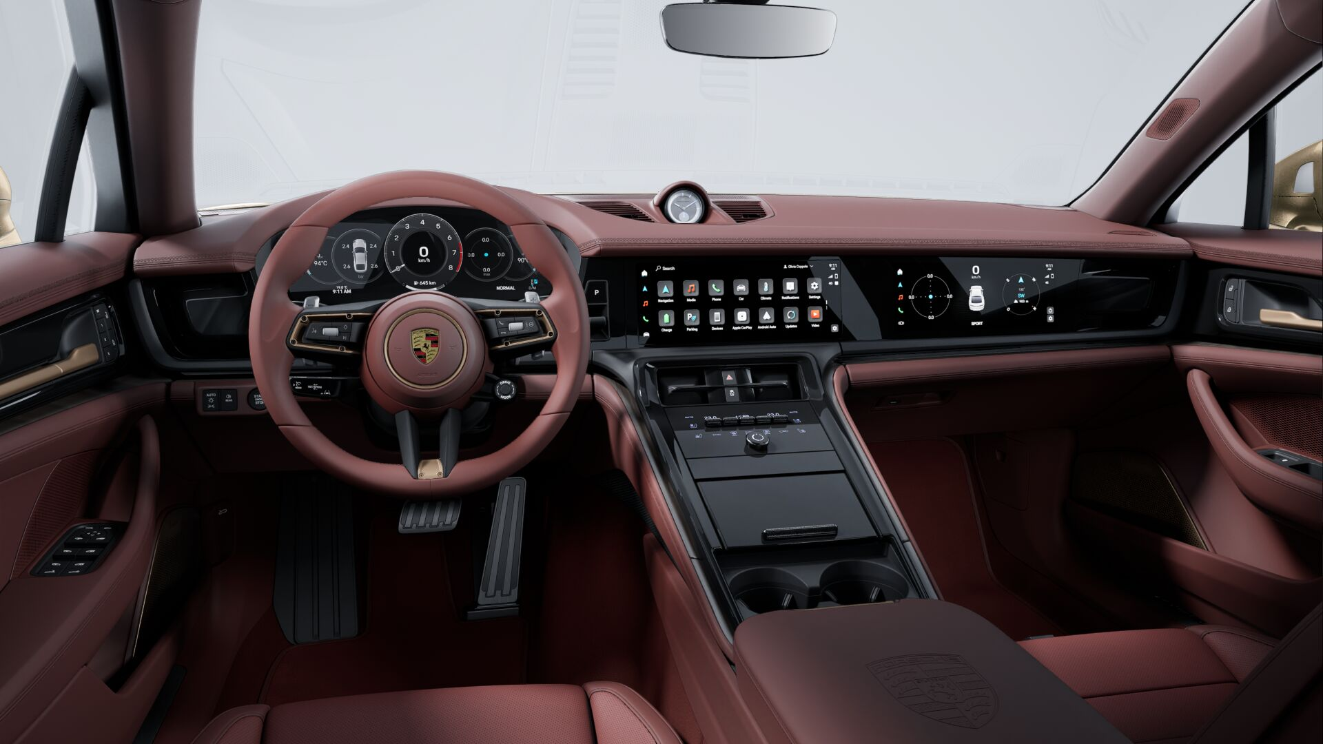 The last thing I want from a car is subtlety, and my Panamera reflects that. I almost chose Provence, a new color from the brand that's a stunning light lilac, but I ended up going for Gold Bronze Metallic, a wonderful shade from the Paint to Sample catalog. For a bit of contrast I picked the 21-inch SportDesign in Neodyme, a richer gold hue, and added the bronze sport exhaust tips and a Panamera script on the doors in matching Neodyme. The SportDesign exterior package is also a must, as it gives the bumpers an even bolder look, and I went for the blacked-out headlights and greyscale Exclusive Design taillights.