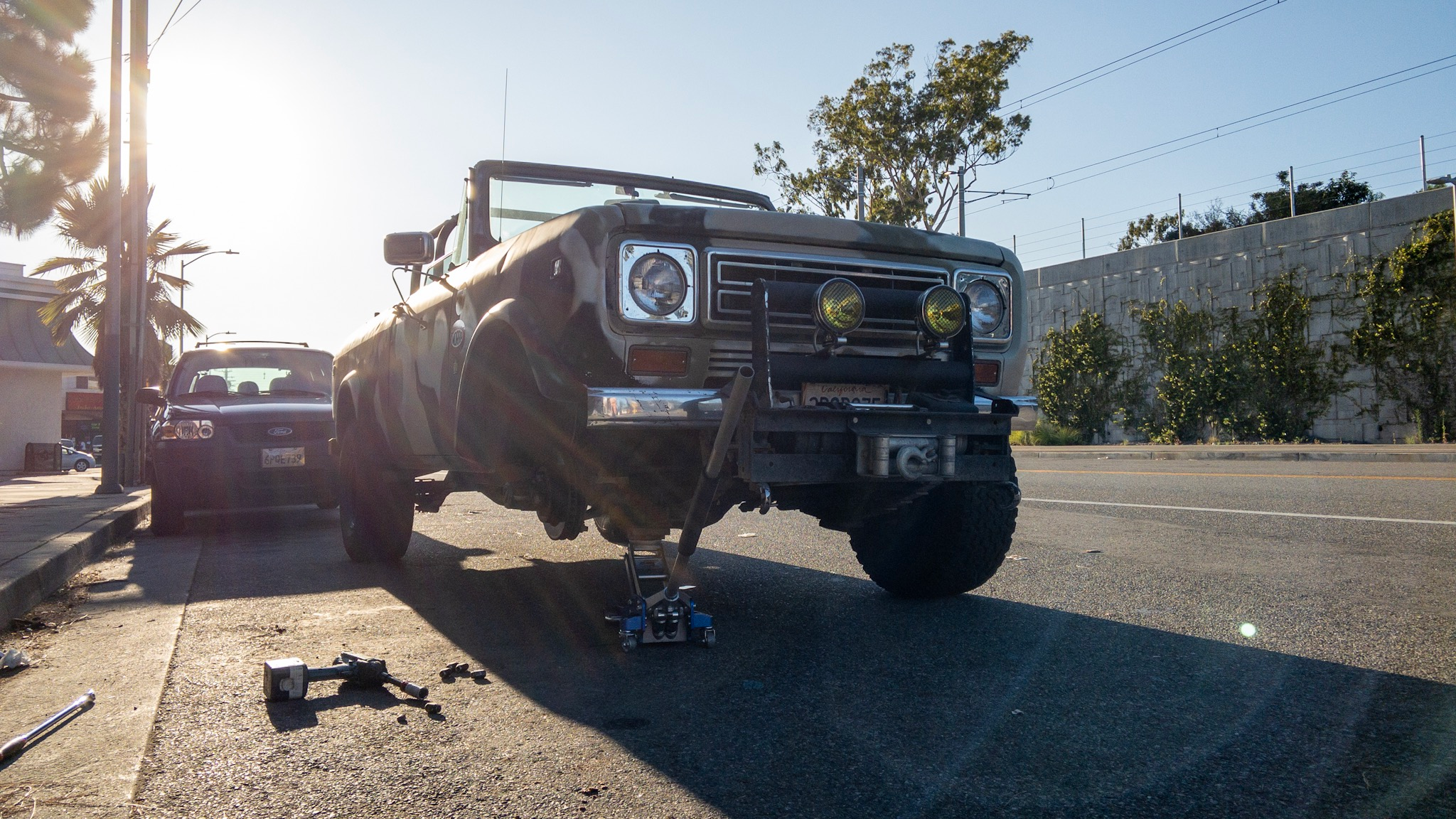 Finally, an epiphany: I could get new wheels and tires for my Montero to shave some unsprung weight and ride height off that truck, then move my good KO2s over to the Scout to kill the rub and have tread again, then throw the used-up KOs on the Scout in the trash where they belonged, effectively properly re-shoeing both vehicles for the price of one.