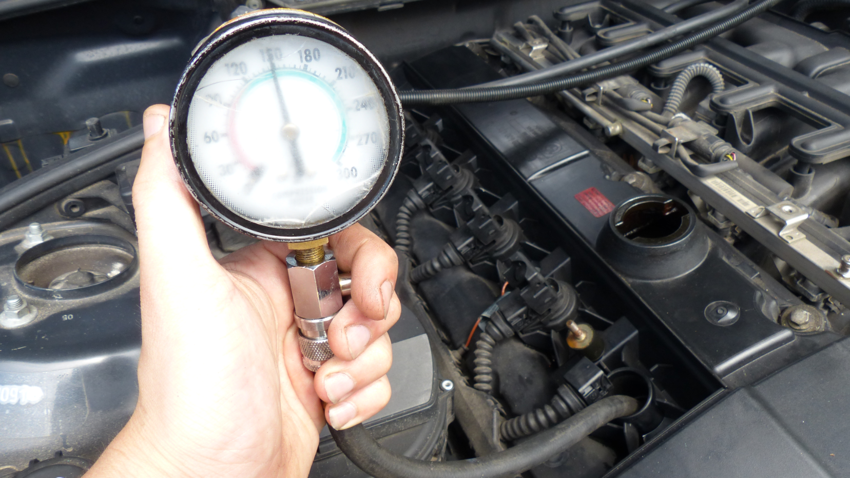 Our 325Ci had an even 180 psi across all cylinders. So we crossed this one off the list. Note: this isn't straightforward on some engine configurations (boxer engines), as the spark plugs on some vehicles are hard to reach.