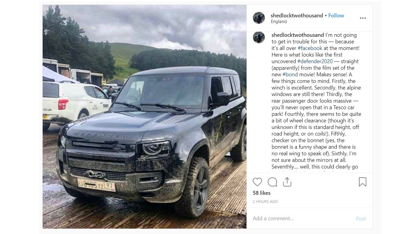 A new Land Rover Defender is on the way. It is apparently going to make its international debut on film in the new James Bond movie, because of course it is. Anything that makes its way onto a movie set is bound to be leaked, because people with cameras tend to end up on movie sets. And they know what to do with photographs.