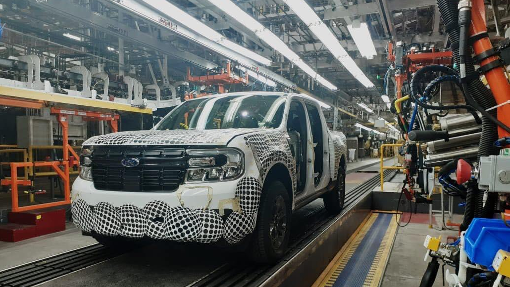 Someone who declined to be named sent us a picture of Ford's new Maverick pickup truck along with the explanation that "an acquaintance of an acquaintance that works there took the picture." Whether that's an extra level of security to prevent them from getting fired, or perhaps Ford themselves leaking the photo in a guerilla marketing campaign, we may never know. In any case, this purports to be a Ford assembly line at the Sonora, Mexico Hermosillo plant with a lone still-camouflaged compact pickup truck rolling toward its freedom and the open road. The photo also found its way to the mavericktruckclub.com forum.