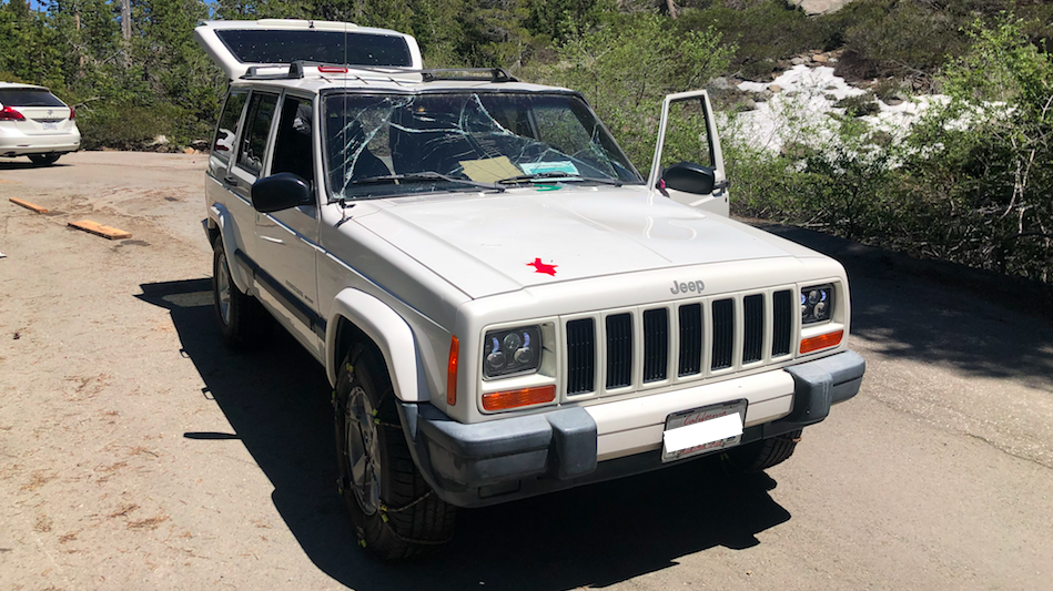 Luckily, with only a jump-pack, the engineer fired up the XJ, and drove it onto the trailer. "It didn't sound too good, but it drove," he told me over the phone. The Californian taped up the windshield to prevent small bits of broken glass entering the defrost duct, and then he and his friend drove the Lexus four hours back home with the Jeep in tow.