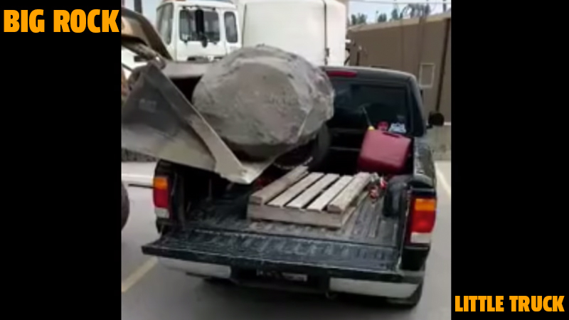 Big rock versus little truck: Witness the dramatic and harrowing one-minute 48-second saga in Low-Definition Vertical Video with rare expert commentary right here!