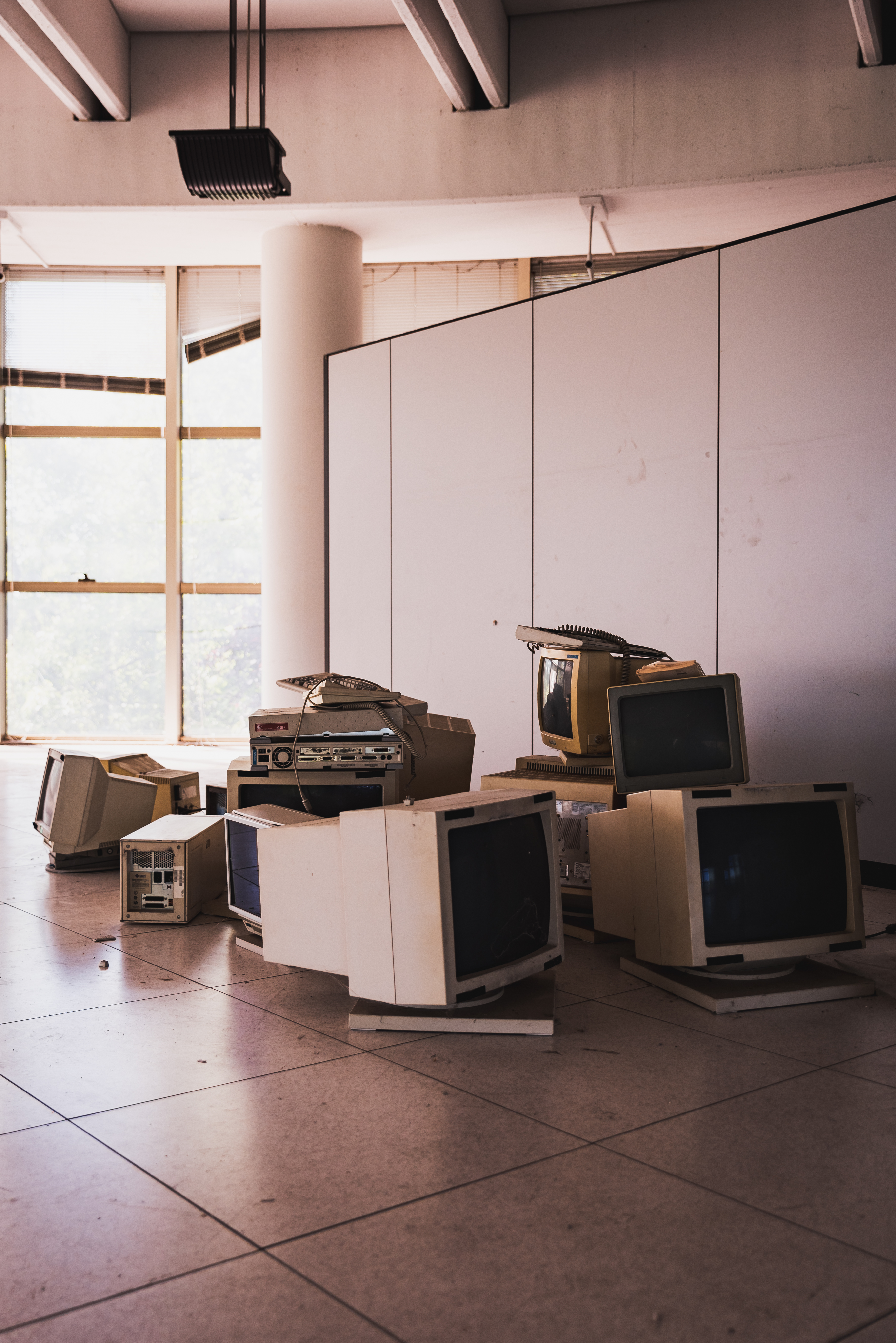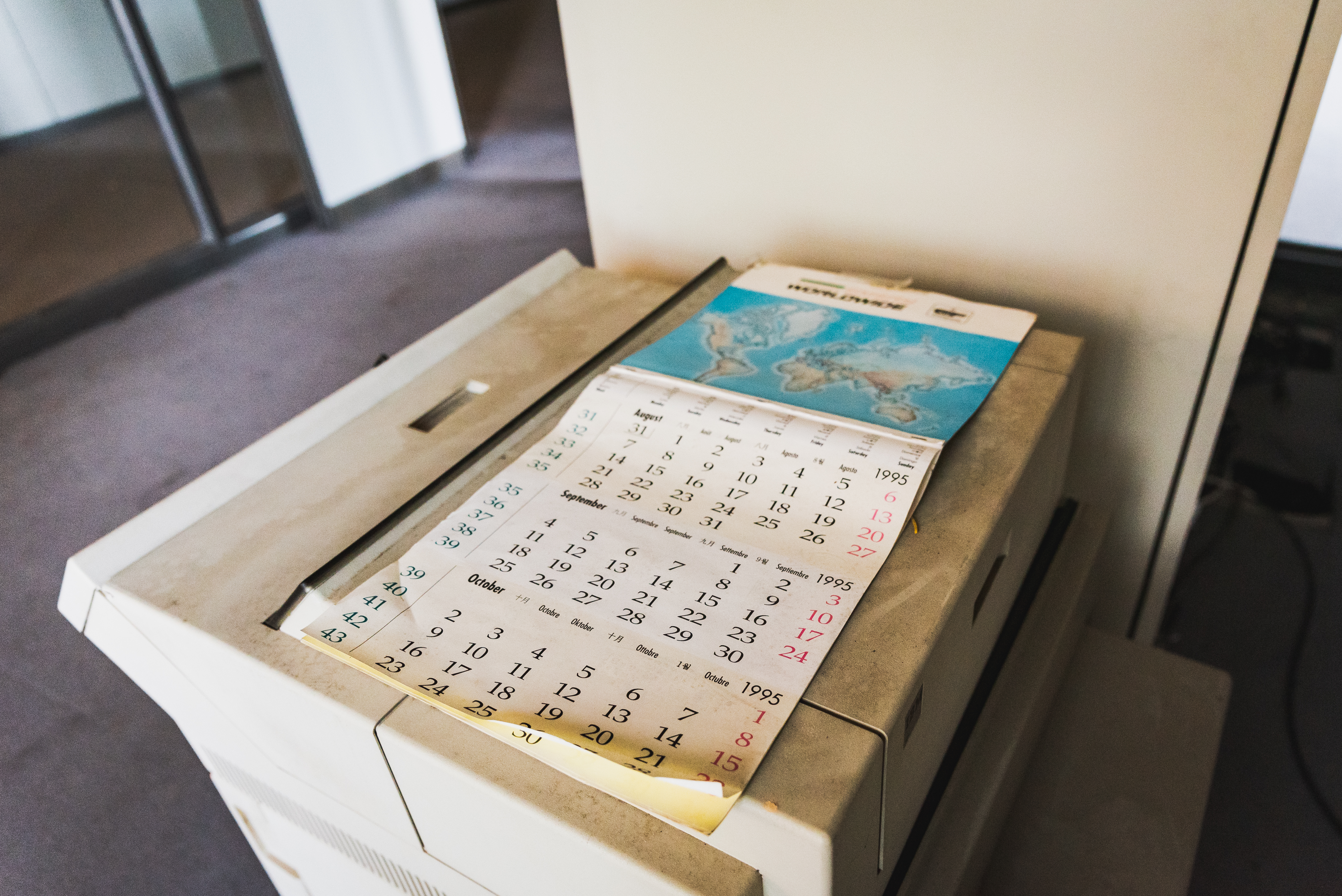 Inside is a time capsule, stuck in the early 90s with period correct calendars, fax machines, and computers. Most of the things inside were liquidated but a lot seemed to have been left over, as if everyone wanted to get out quick. A Japanese flag remains in the reception hall, perhaps for the last customer to have visited the factory before it closed its doors forever.