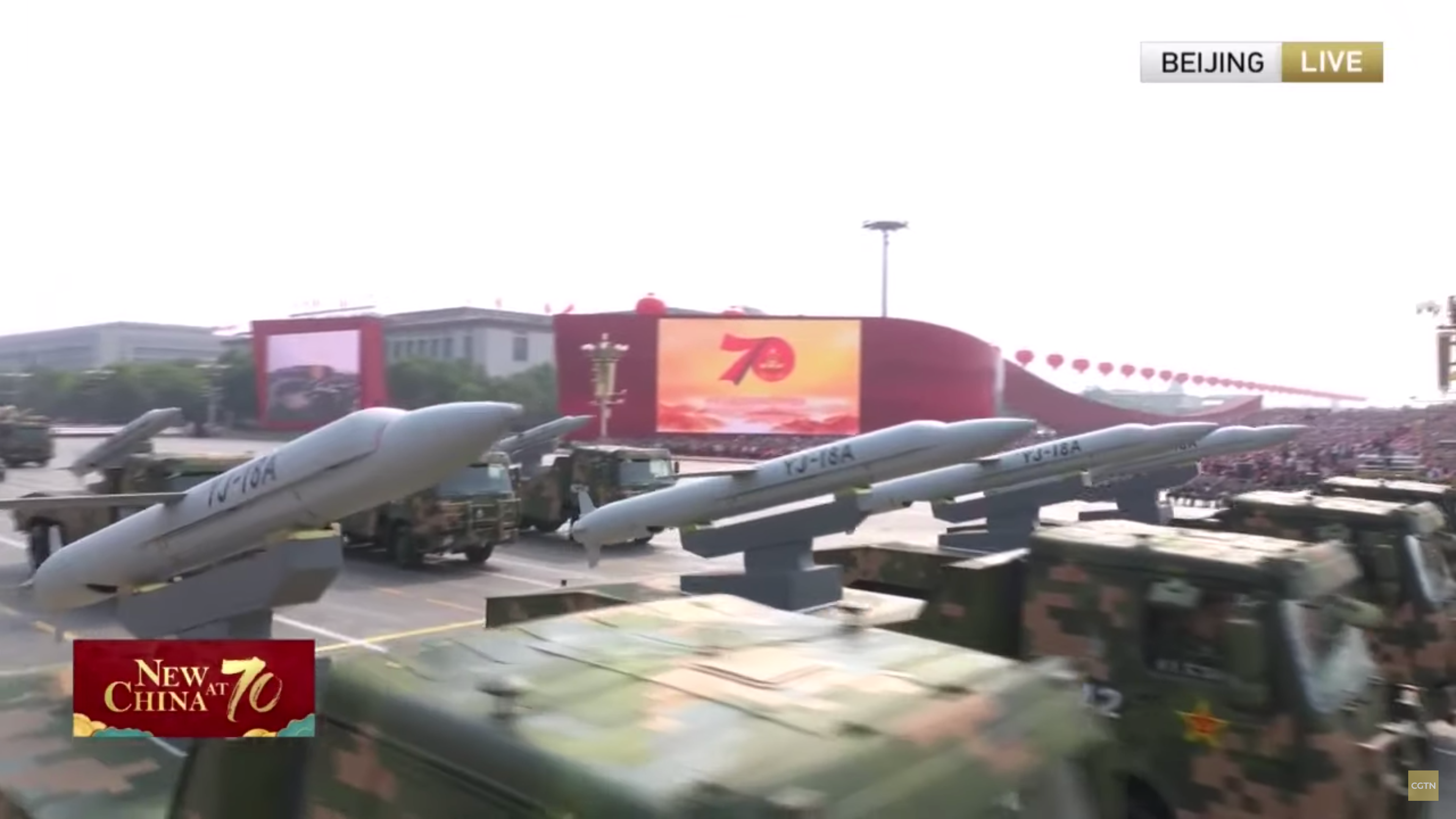 One thing readers might have noticed: all of the missile names are not only on the side of missiles they're in English, not Chinese. That's because the real audience for this parade doesn't understand Chinese.