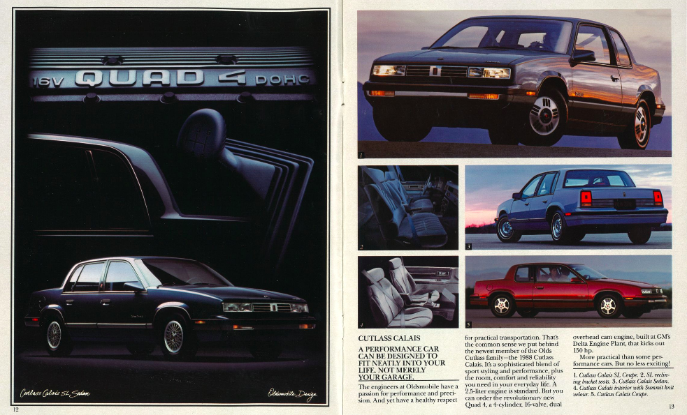 In a May, 1988 issue of Popular Science magazine, author Dan McCosh compared three vehicles participating in the "latest trend in high-output engines": four valves per cylinder. Those cars were the VW Jetta GLI 16V, the Chevrolet Nova Twin Cam 16 Valve, and Quad 4-equipped Olds Cutlass Calais. And though he liked the engine's power, he considered the Quad 4 the least refined of the bunch.