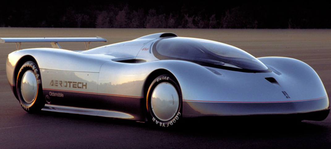The sleek sports car was called the Oldsmobile Aerotech, and it was developed specifically to show what the Quad 4 engine was capable of. The car's striking design was first penned by legendary stylist who would later become GM's VP of Global Design, Ed Welburn. It was a single seater whose architecture was based on a 1984 March Engineering Indy race car chassis that GM had bought from A.J. Foyt, its body was made largely of carbon fiber, and it featured a head-up display.