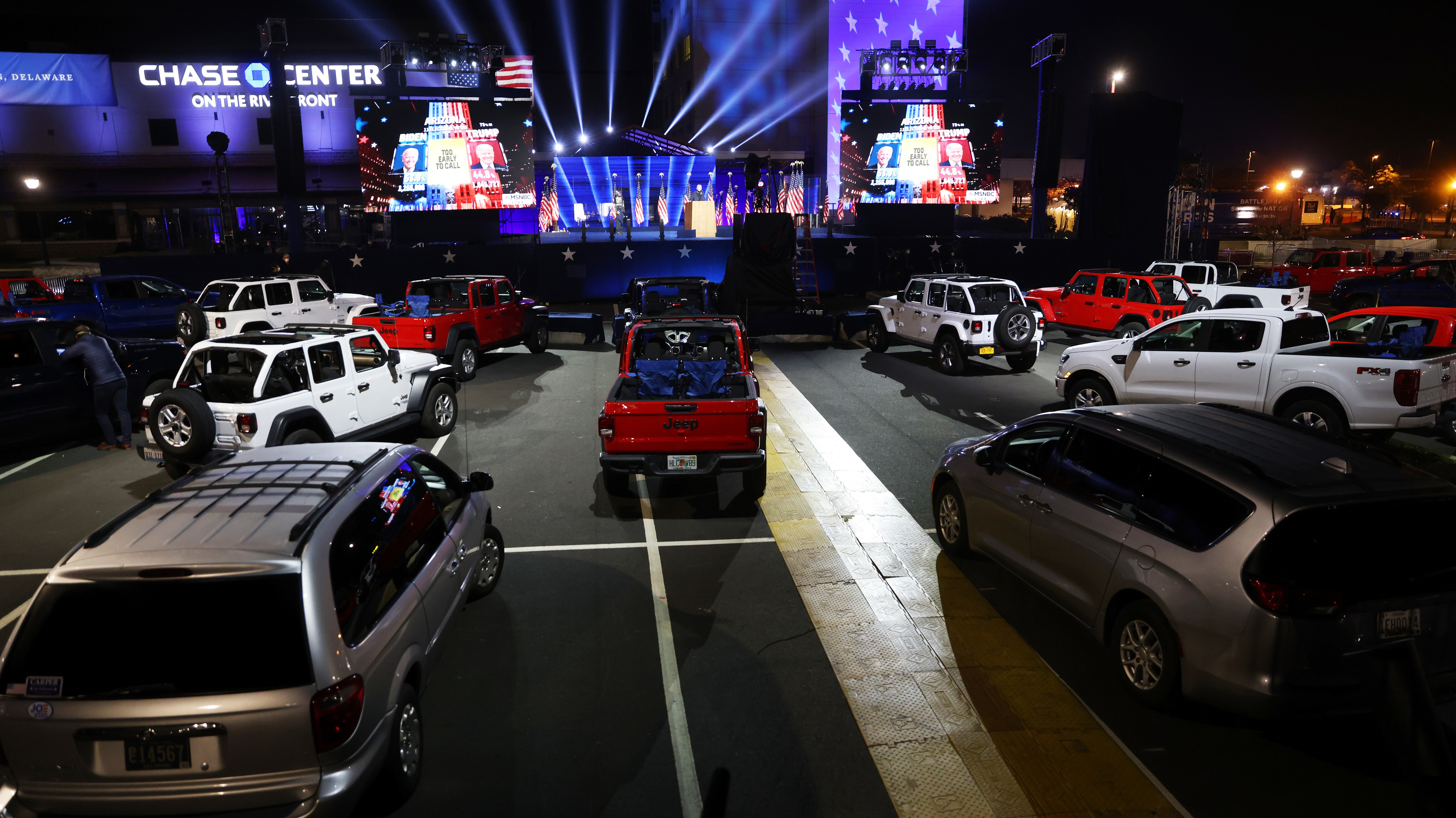 But it's a pretty normal situation for speeches, especially in these situations. Family and friends get the front row. In an era of social distancing, setting up a handful of Jeeps, Fords, and Chevys was an easy way to highlight the automotive industry, provide space for loved ones, and stick with the drive-in theme of the day. And, considering the UAW did endorse Biden, it makes sense that its cars would take center stage.