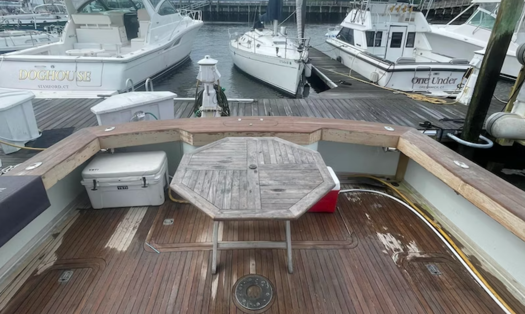 Even without the Sopranos connection, this is a pretty legit boat. For your money, you get two Detroit Diesel DDEC 625 horsepower marine engines, two Garmin 8215 Displays with GPS Plotter, radar, sonar, Garmin Autopilot, high-gloss teak cabinets inside as well as two stateroom and two heads. Good luck trying to find an apartment in New York City with this much stuff for less than a couple million bucks.