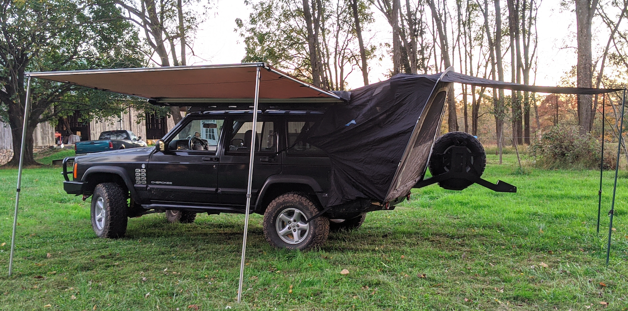 Hero Saves Official Pontiac Aztek Tent From Junkyard, Installs It On His Jeep Cherokee XJ