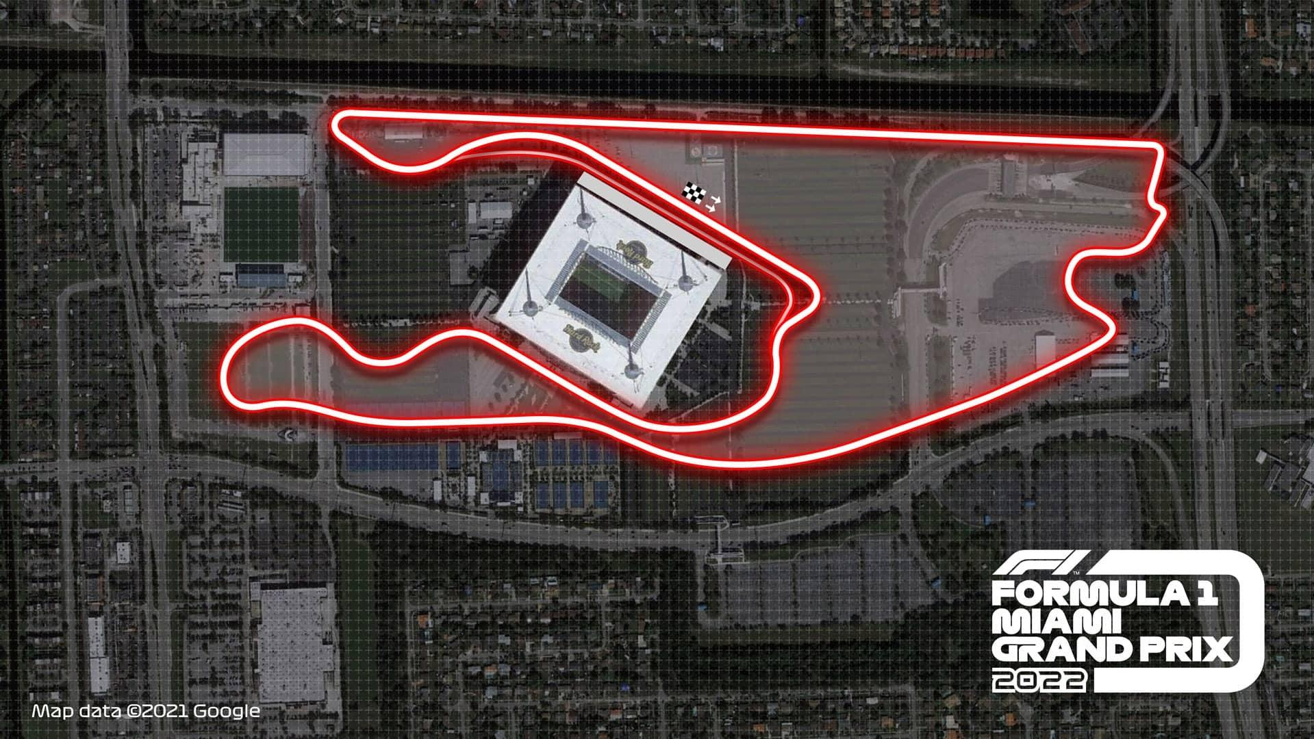In case you need a reminder, the Miami Grand Prix will take place in and around the Hard Rock Stadium in Miami Gardens, Florida, which is just north of Miami proper. The parking lot and private roads around the arena will be transformed into a state-of-the-art F1 circuit — or, that's what F1 has been saying.