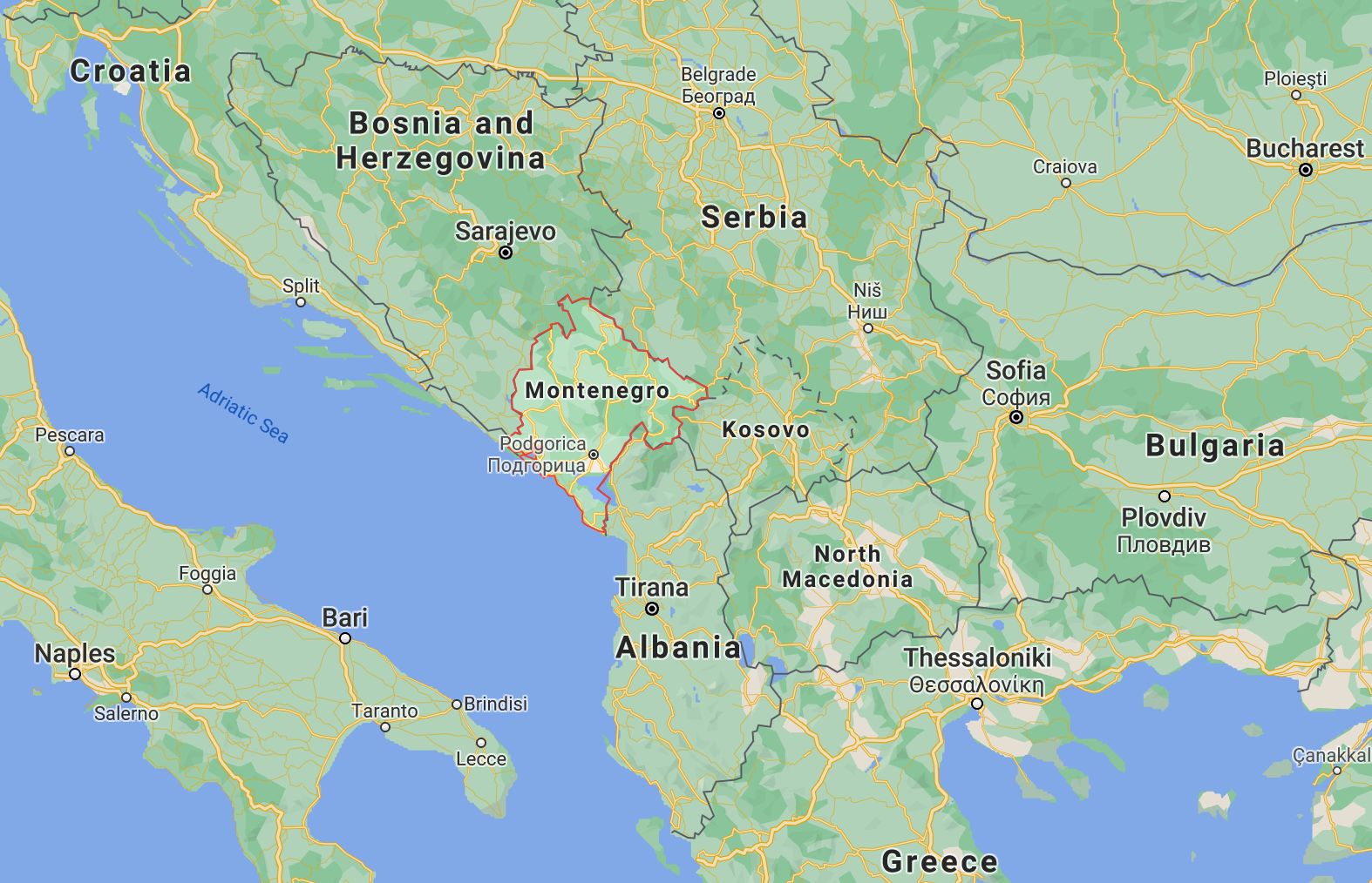 Montenegro has a $1 billion loan out with the Chinese state bank, Export-Import Bank, that it can't pay. Before you go running to your Googles, I'll just go ahead and show you where Montenegro is right now: