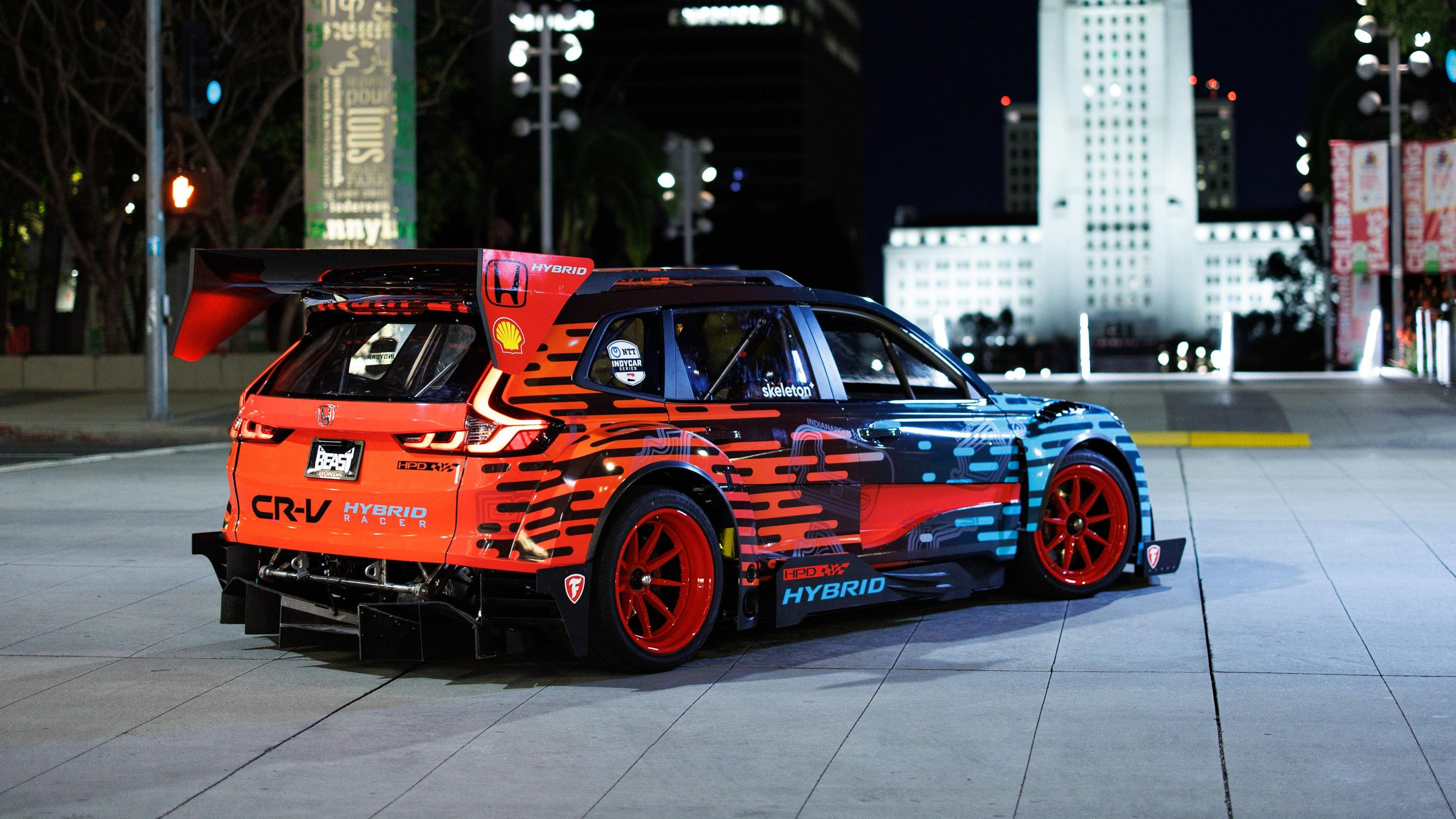"This project vehicle is an Indycar 'beast' in Honda CR-V 'sheep's clothing'," David Salters, president and technical director for Honda Performance Development, said in a press release. "The CR-V Hybrid Racer is our 'rolling electrified laboratory,' to investigate where the talented men and women of HPD and Honda could go with electrification, hybrid technology and 100 percent renewable fuels. It epitomizes Honda's fun-to-drive ethos, showcases electrification and it just rocks our car culture roots and racing heritage! We present the CR-V Hybrid Racer – aka 'The HPD Beast'!"