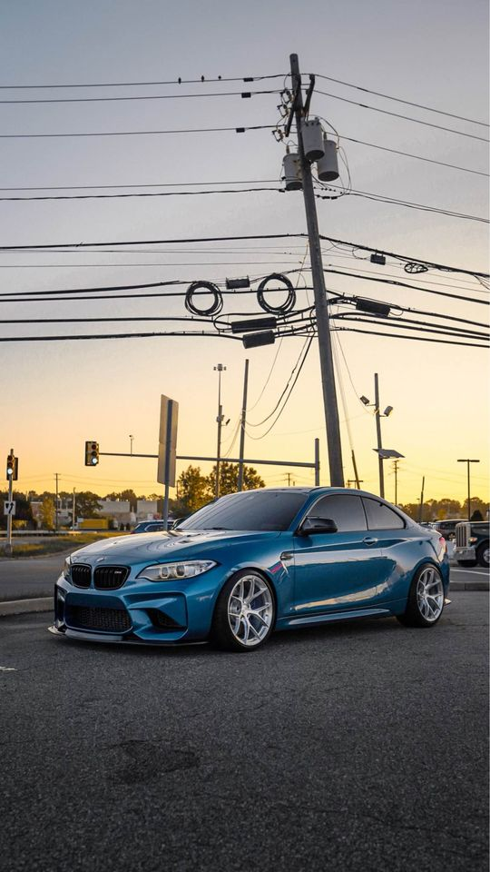To remind you of what you're aspiring to, though, here's a gorgeous M2 in Long Beach Blue. It's the good car, in the good color, with some admittedly oversized wheels and a questionable alignment. You can fix all that, though. It'd be a lot easier than swapping the Ti.