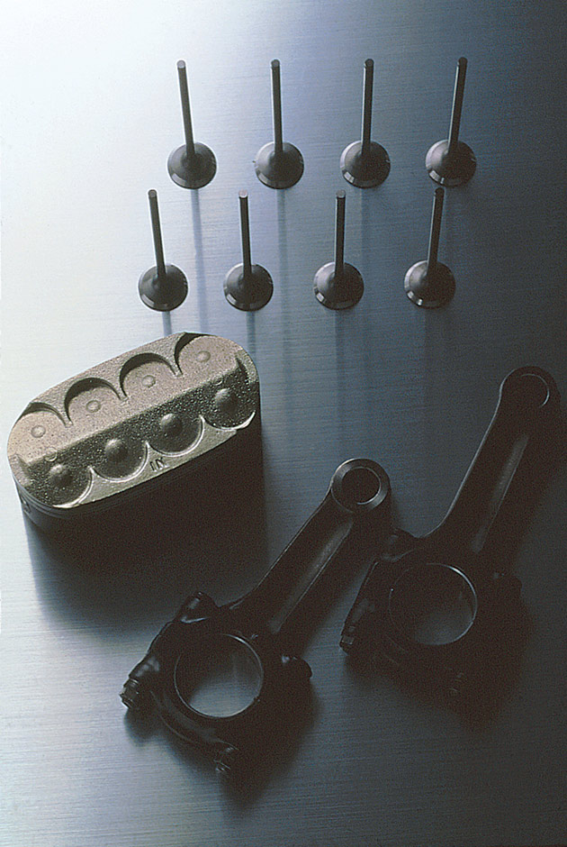 With eight valves lined up atop the pistons, each supported by two connecting rods, the team's new 4-cylinder engine looked like an 8-cylinder. According to Fukui's calculation, the engine could potentially reach a maximum speed of 23,000 rpm and output of 130 horsepower. Therefore, the target output was set accordingly, at 130 horsepower.