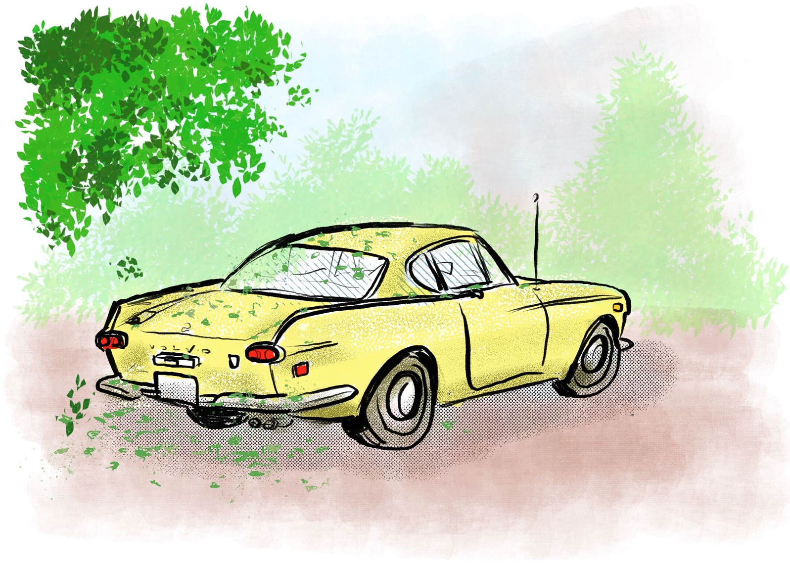I'm writing this because the deeply troubling events of the world at the moment made me want to take a small moment to meditatively doodle, and the result was what you see up there: my old 1968 Volvo P1800S under a tree. The image is actually significant to me, because that tree forced me to get rid of that car, which indirectly but significantly led to me getting this amazing job I have today. I better explain.