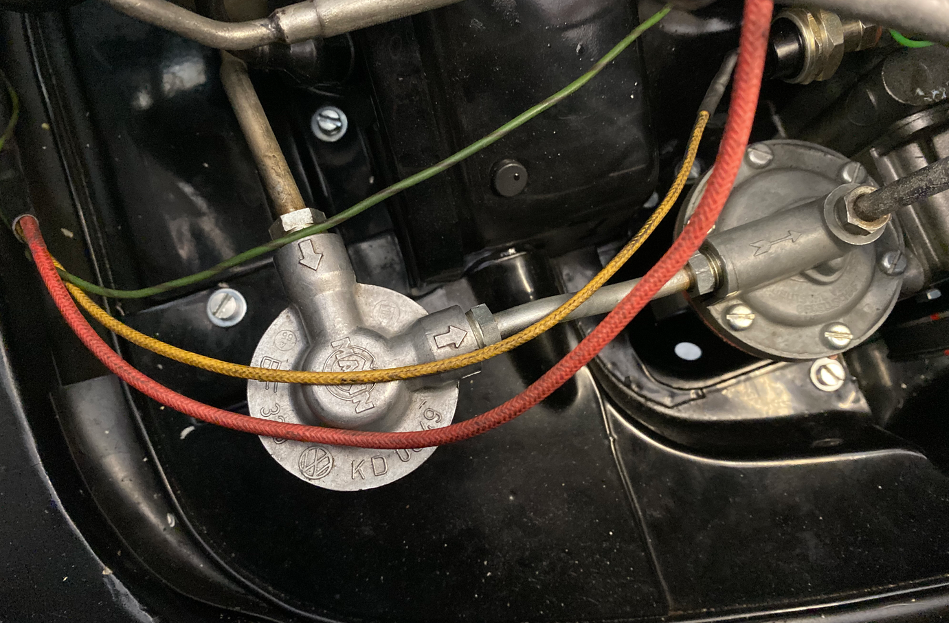 Decades of Beetle driving made the 356 America feel oddly familiar, since it is still very clearly a mutated Beetle, as you can tell by peeking at the engine, which, while significantly uprated from a VW mill (twin carbs, a real oil filtration system, hotter cam, etc.) still has a few VW parts, like this nifty magic doohickey that makes fuel turn 90 degrees: