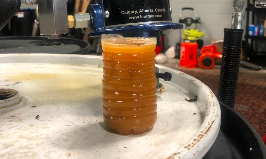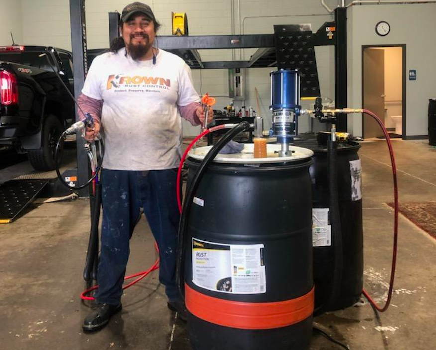 First, a quick look at what this fluid actually is. I don't know a ton about it, but I can tell you that it is amber and has the consistency of maple syrup (you can see a container of the fluid below). It's petroleum based, and Krown applies it to cars by heating it up to 135 to 150 degrees Fahrenheit, pressurizing it to about 95 psi, and then spraying the atomized oil onto and into the car. "It creates a fog that literally coats everything," Rochester Hills Krown owner John Hart told me over the phone.