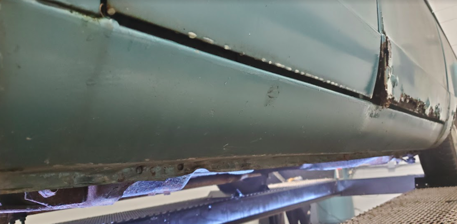 He drilled the holes at the front of the rocker panels as well via the front door jambs.