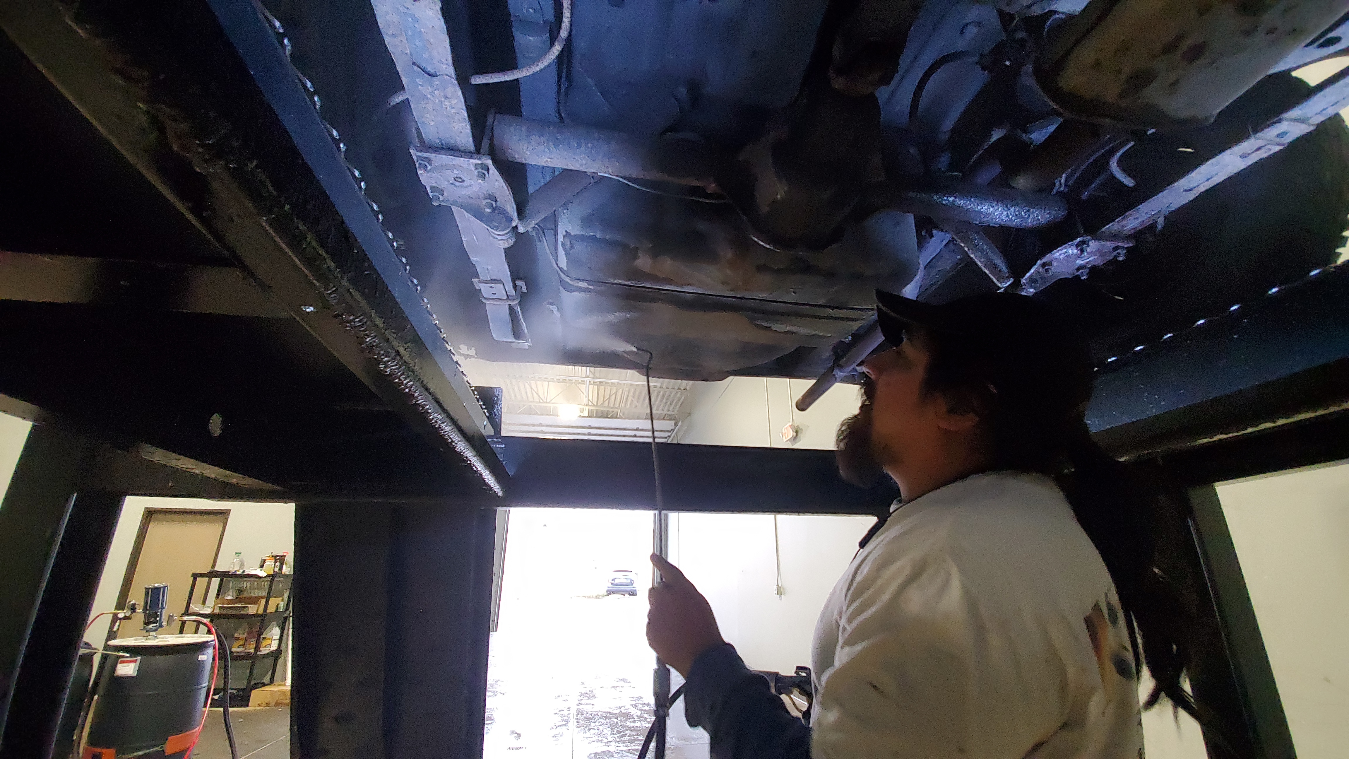 In addition to filling the main unibody rails, George used that wand to coat underbody surfaces that couldn't otherwise be reached with a lower precision, higher-volume sprayer (which I'll show in a moment).