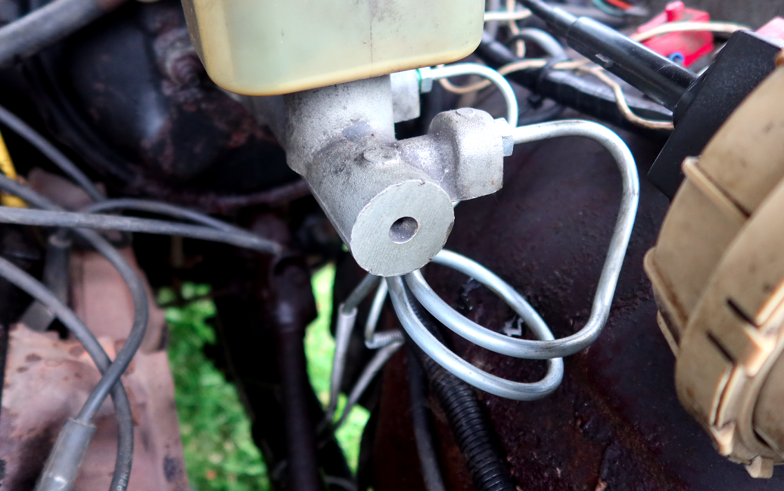 More recently, I had to replace brake lines. I only did the fronts as I knew for a fact that as soon as I tried bleeding the rear brakes, I'd break off the rusty nipples on the wheel cylinders and next thing you know I'd be rebuilding a set of drum brakes. I wanted to focus on getting the Jeep driving, so that I could diagnose other faults; plus, the front brakes are the more important ones, anyway.