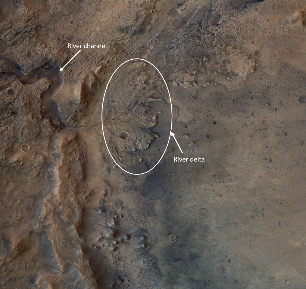 To set themselves up for success, scientists needed to pick a landing site within one of these areas thought to have once contained life-facilitating environmental conditions, and they found that site in Jezero Crater (pictured above). It is believed that this crater is a dried-up lake bed of an ancient body of water that was once about the size of Lake Tahoe. Specifically exciting to scientists is the fact that remnants of a river channel, and what appears to be a river delta, can be seen from orbit.