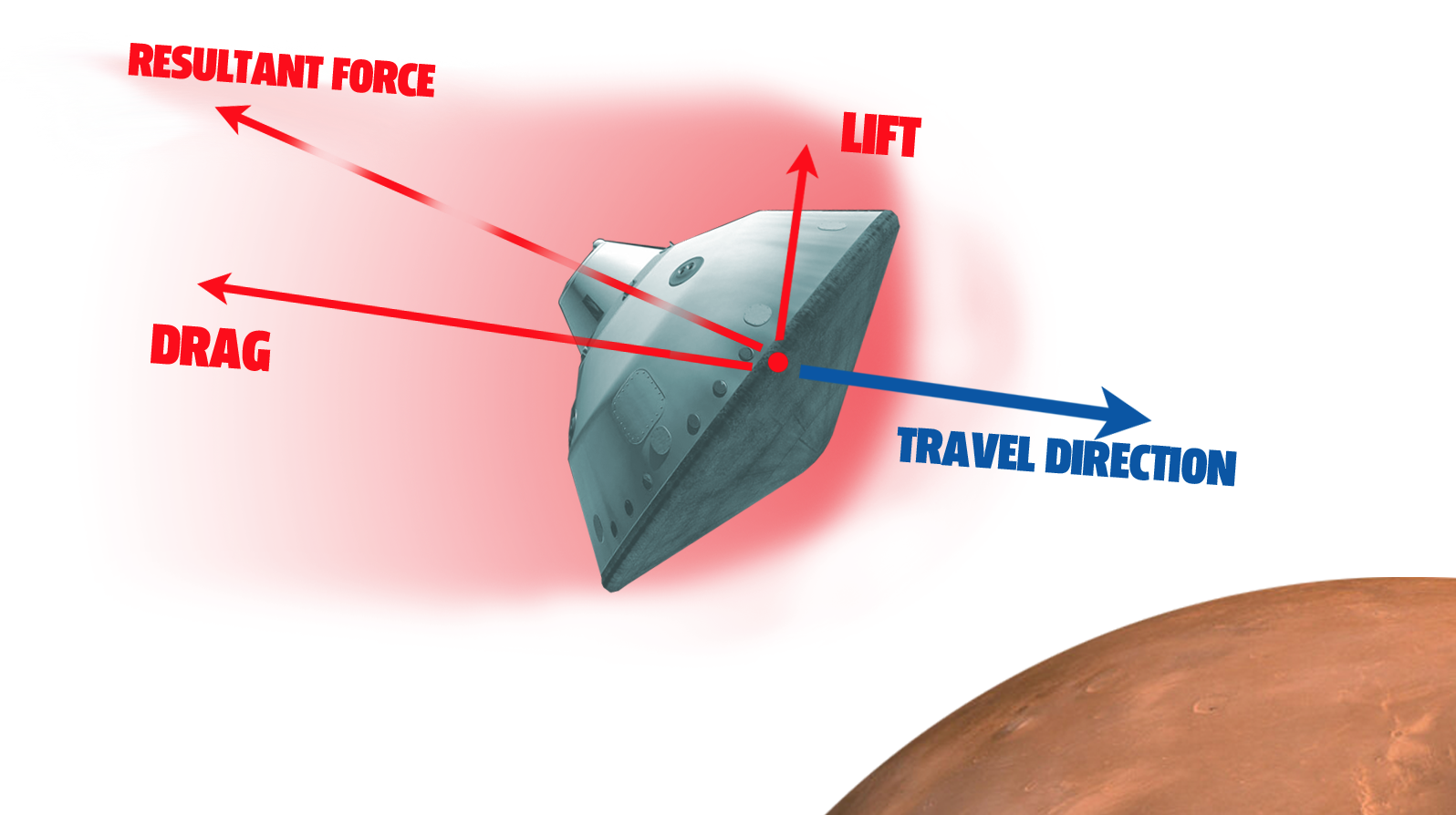 About one minute after cruise stage separation, the spacecraft did one more thing that was crucial in solving the energy management problem of EDL: it ejected two pieces of dense tungsten called the cruise balance masses. Until this point in time, the center of mass of the cone shaped vehicle was located in the center of its geometry so that it could bbq-roll around its center-axis for thermal and stability reasons. After ejecting the cruise balance masses however, the vehicle's center of mass was no longer in the center of the vehicle geometrically. The offset of the center of mass was done so that the vehicle had some lift during descent.