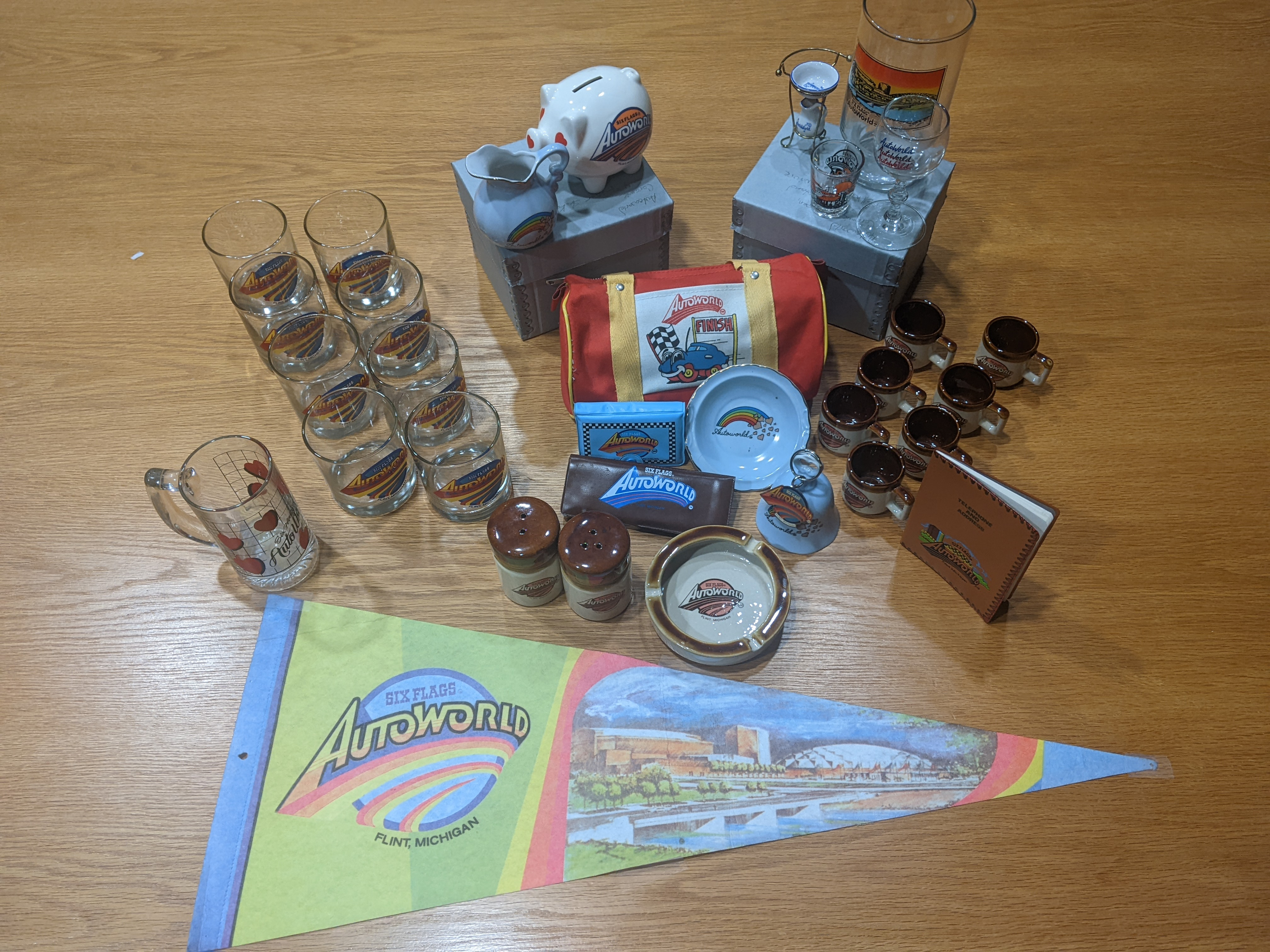 "Have you ever seen so much ridiculous merch?" she said, as we went through the boxes of rocks glasses, personal grooming kits, coffee mugs and dollhouse furniture, all emblazoned proudly with the admittedly very cool Six Flags AutoWorld logo. All of it from a park that was open regular public hours for only six months.