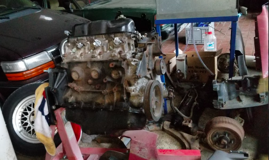 Here he is with a brother and a friend yanking a V6 motor out of a Voyager: