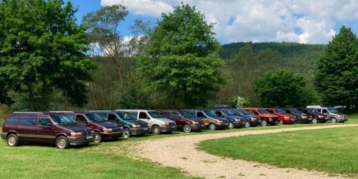 Tizian's involvement in Germany's Voyager community is multifaceted. He connects with other van owners through WhatsApp groups and through eBay, plus he plans Chrysler Voyager car shows like this one in Edersee last summer: