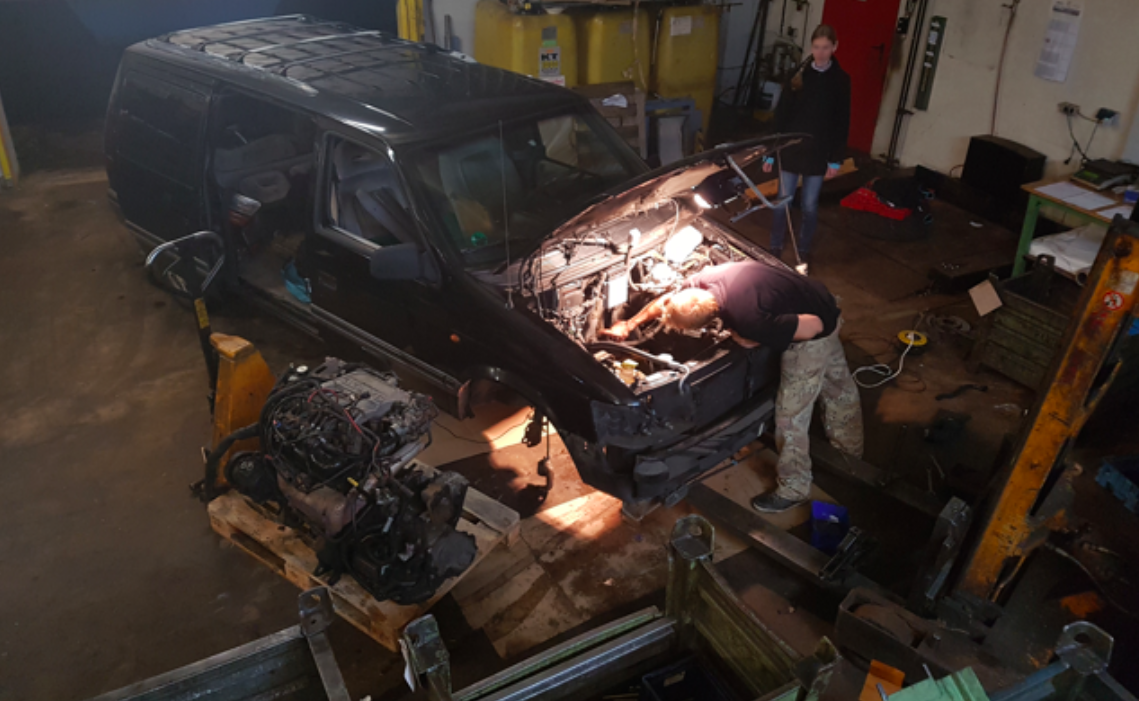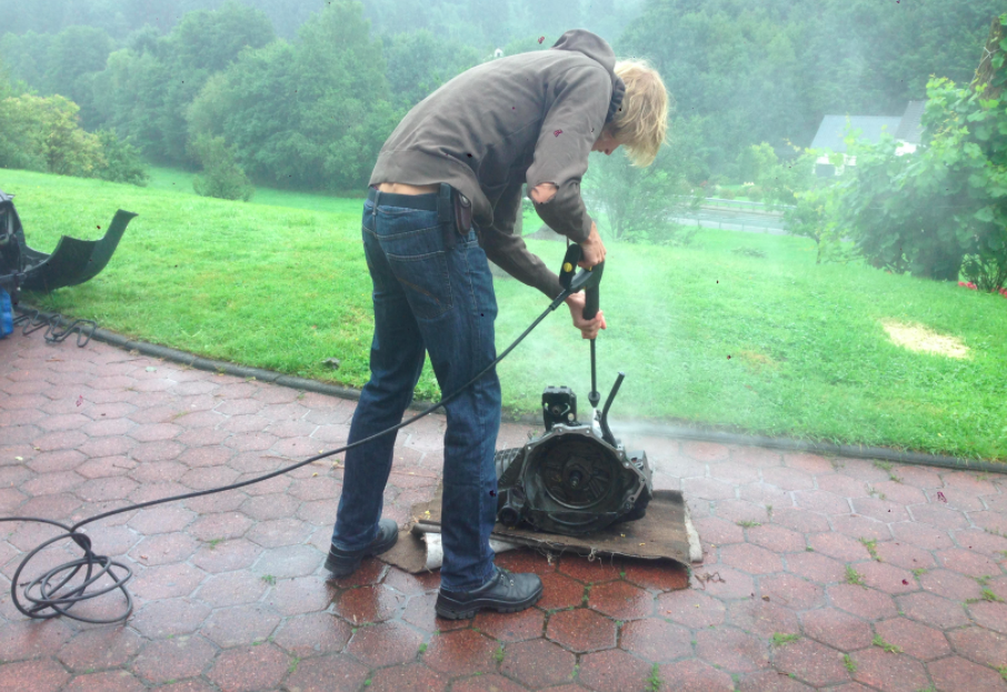 Leander told the story of how the duo had yanked out the transmission at an industrial site using a forklift and swapped in Tizian's old four-speed: