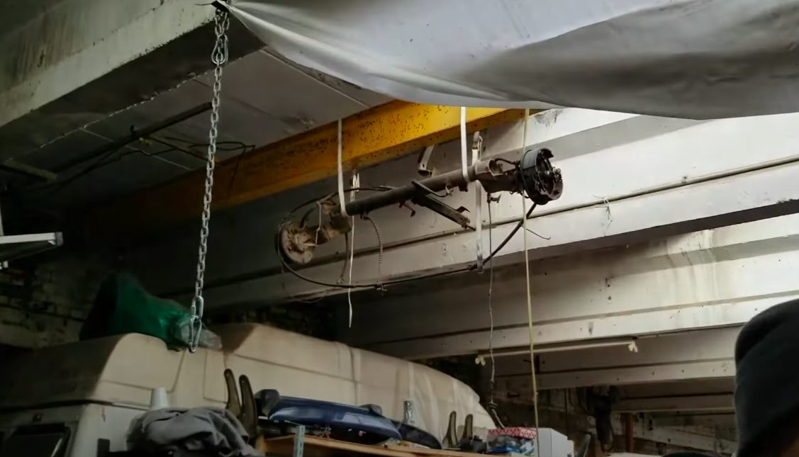 In this photo you can see another spare engine and an all-wheel-drive rear axle: