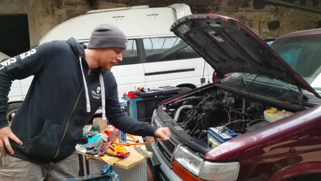 As Tizian talked about his brother's transmission fix, in the background stood a shelf absolutely overrun with Chrysler Voyager parts. You can see Tizian going through his extensive parts reserve in the video towards the top of this article.