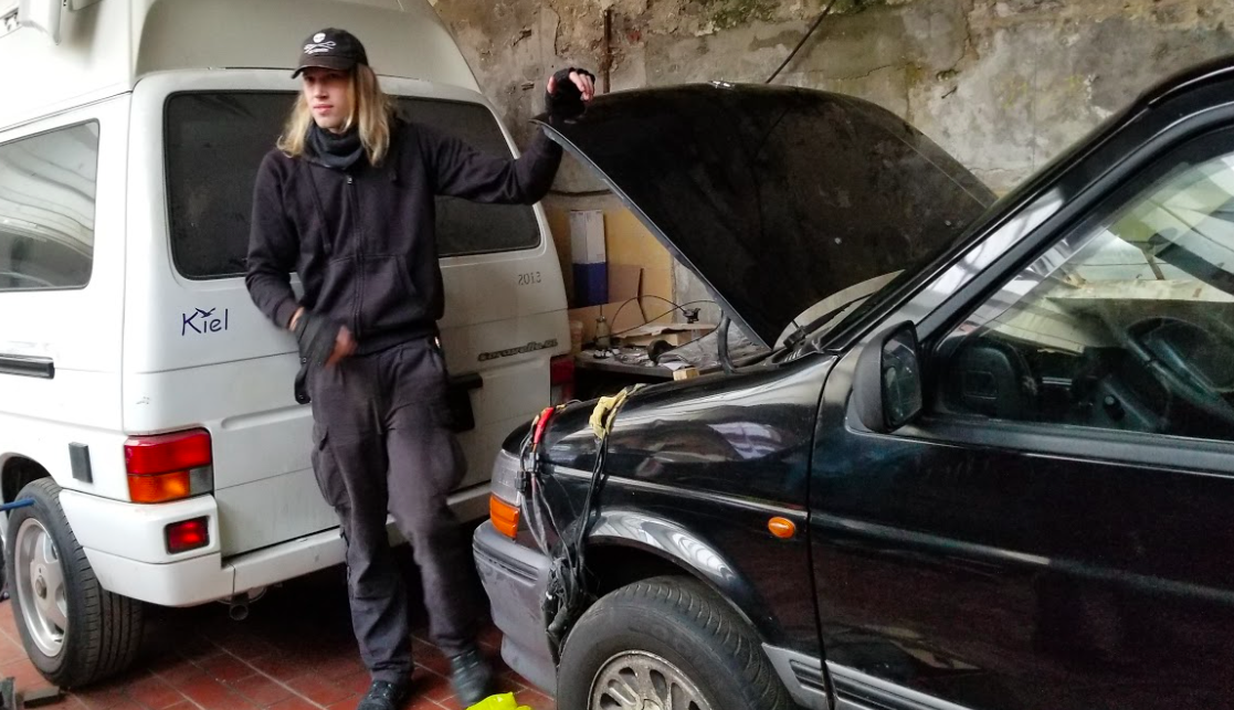 "When we saw it...all of us thought 'God we hope this is not the car'...it was bad." Though they spent only 390 Euros, it still wasn't a great deal. "We had no clue...I think I was in the 12th grade...we didn't even realize that the front right wheel bearing was completely useless...we had absolutely no idea what we were buying."