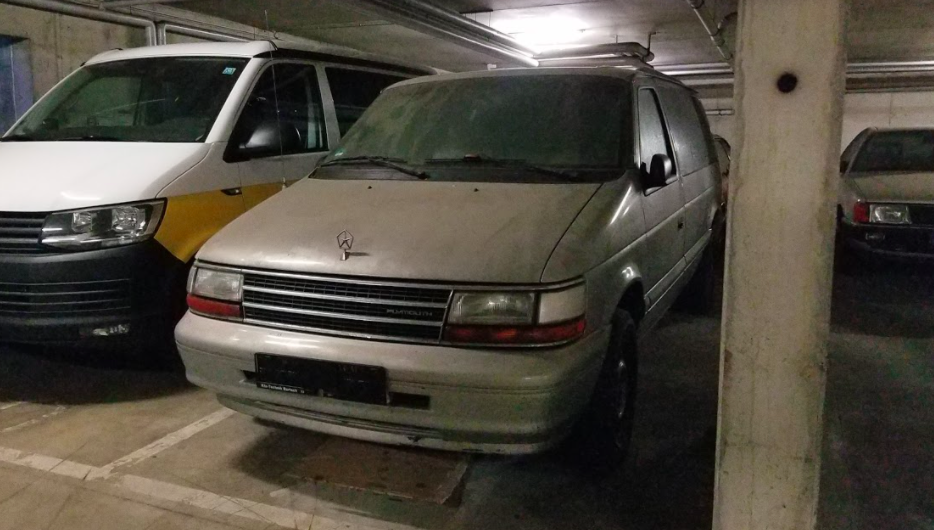 Eventually, the three of us left the old textile building, and headed to a parking garage, where Tizian stored even more Chrysler vans. This one is a U.S.-spec Plymouth Voyager that Tizian bought for 200 Euros:
