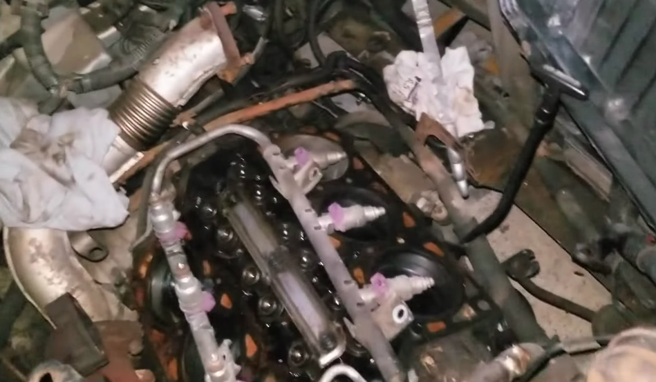 Looking under the hood revealed a dismantled engine that had suffered a cylinder head gasket Undichtung, or leak, something that I gather is a common issue on these 3.3-liter V6 engines.
