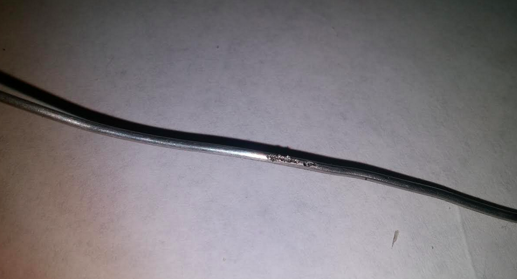 Here's where the wire touched the battery terminal. There's a little chunk of aluminum missing.
