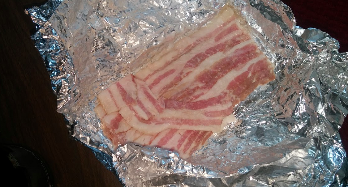 Once I got thinking about car cooking, I had to try it myself. The first thing I did was drive to the grocery store and pick up some fine meats: pork cutlets, bacon and a steak.