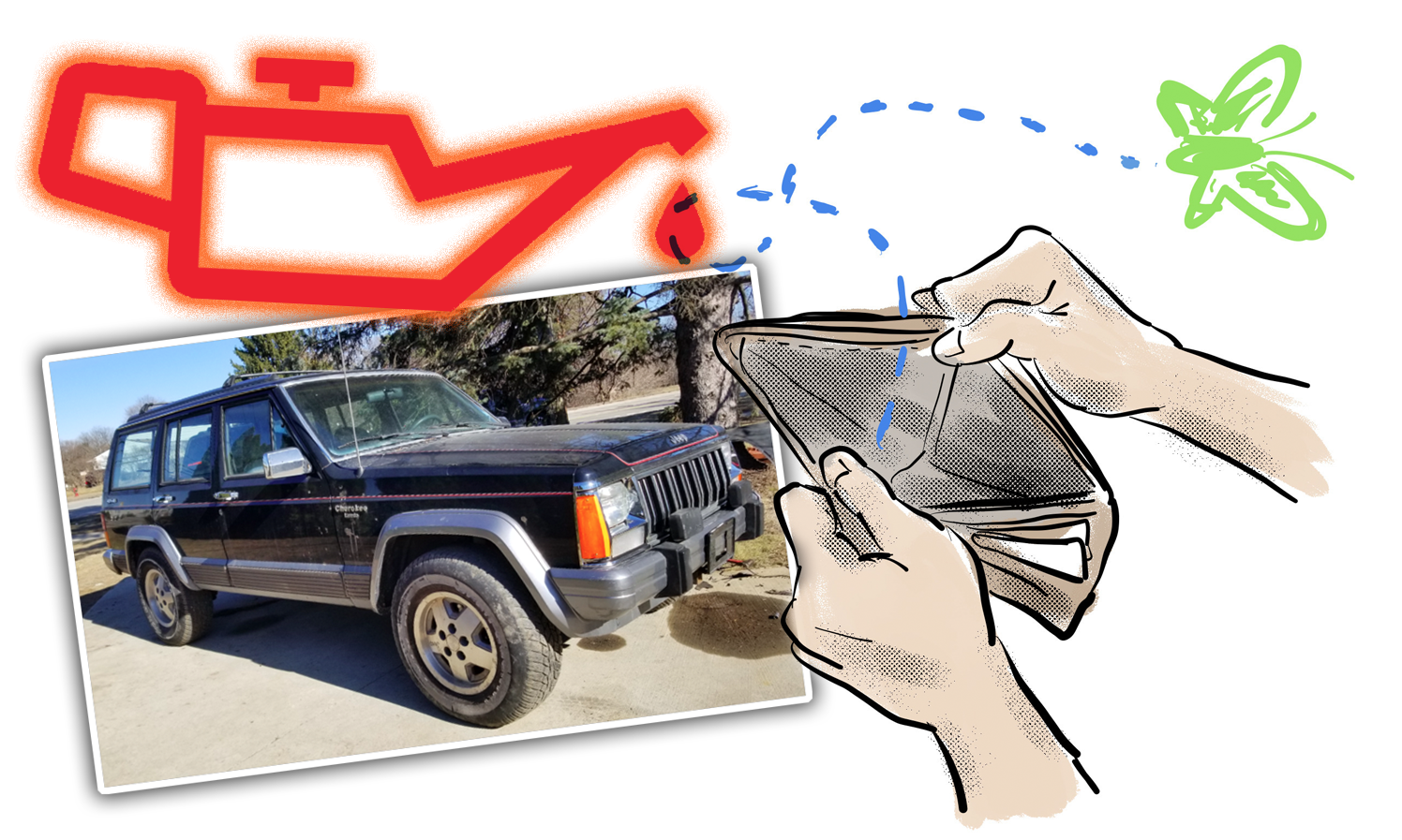 If I do an oil change on my 4.0-liter inline-six-equipped Jeep Cherokees or Grand Cherokees, I'll need six quarts of oil. "Traveller" brand oil from Tractor Supply Co. costs $2.49 for a single quart; add that to the $10.99 I'd spend on the five quart jug, and I'm in $13.48 before tax. I'd then head to Walmart, snag a Supertech oil filter for $2.97 plus tax, and all in, I'd have spent around $17.50. That's dirt.