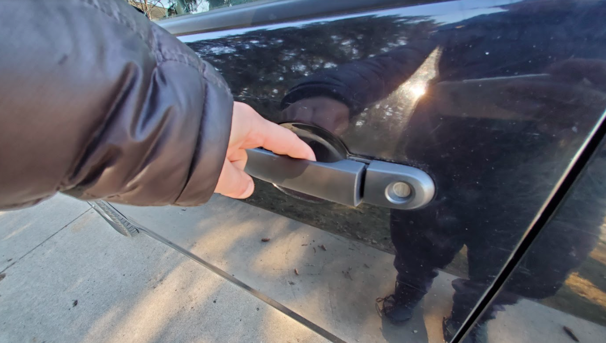As soon as I grab the door handle and pull, it's already unsatisfying. There's no distinct "click" accompanied by a brief vibration in the door when the latch releases. There's just a weird squeak, and no feedback whatsoever; the door is just unlatched, and you just have to pull.